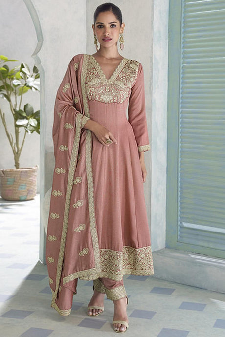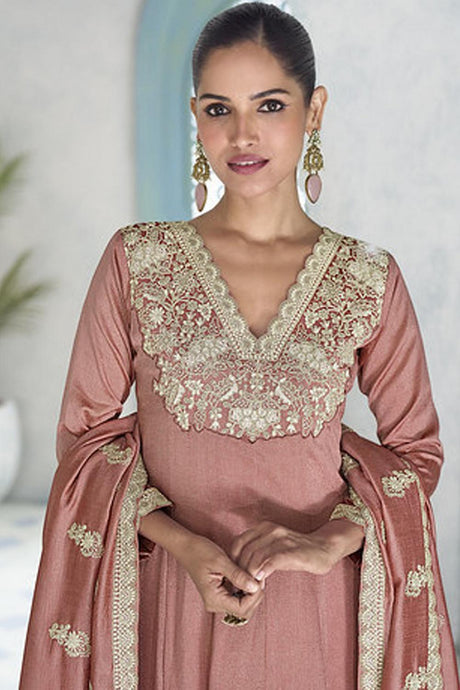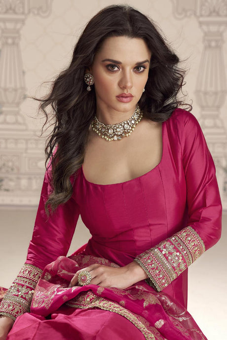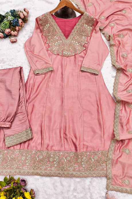 Pink Sequin with Floral Embroidered Art Silk Kurti Pant Set