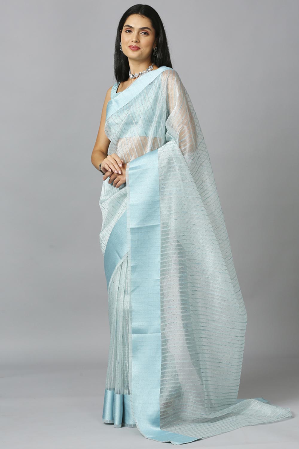 Aqua Blue Organza Stone Work Party Wear Designer Saree