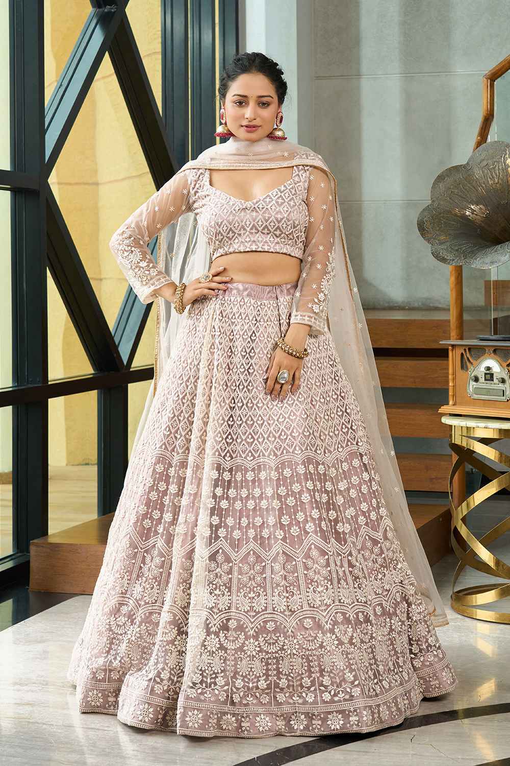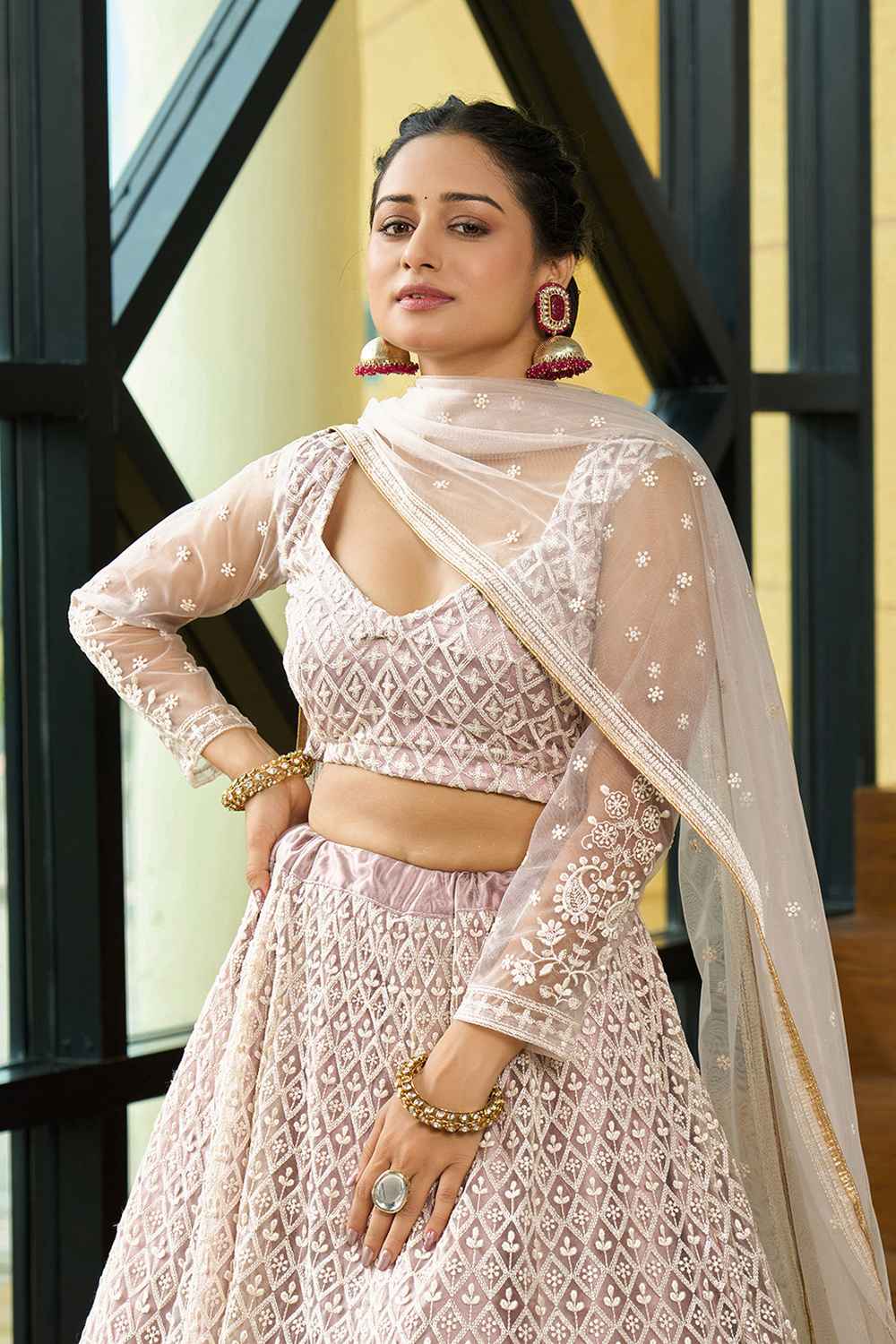 Step into the spotlight with our Lehenga a dazzling creation designed to make your special moments unforgettable. Crafted from premium Net this lehenga offers a perfect combination of elegance and ease, keeping you graceful all day long. The exquisite Embroidered paired with the intricate [Pattern] makes this lehenga a masterpiece of traditional craftsmanship. Whether it’s Weddingwear,Reception,Sangeet or a grand celebration, this lehenga is the perfect choice to make a statement. Pair it with an ornate choker, a matching dupatta, and embellished stilettos to complete the regal look. Add a sleek bun or cascading curls for added glamour. Make every moment magical with the timeless allure of Lehenga