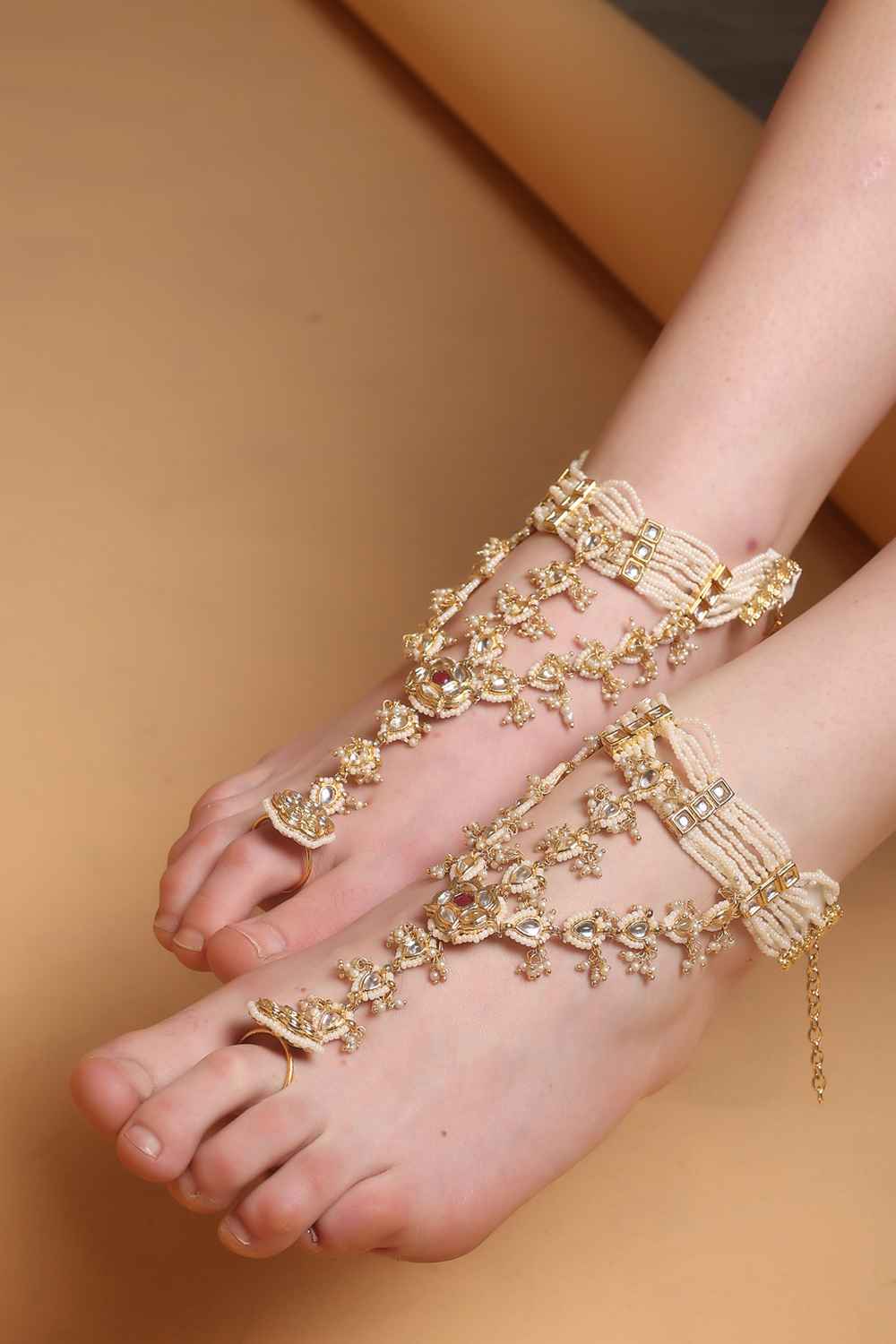 Unveil your inner diva with our Anklet that combines artistry and sophistication. Made from Alloy this jewelry is adorned with Kundan, Pearls, Natural Stones ensuring a dazzling finish. Whether you're dressing up for as per your Style & preference, this piece is your ultimate style companion. Pair it with modern accessories to complete your outfit and make every moment sparkle