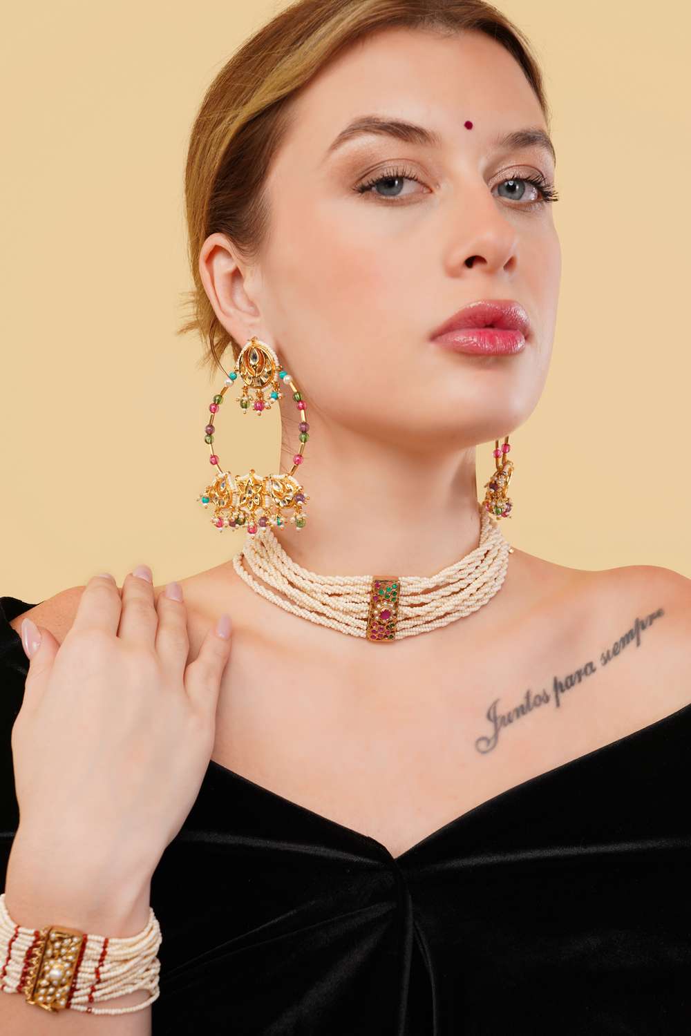 Complete your look with our Choker Necklace an accessory designed to add the perfect finishing touch. Made from Alloy and showcasing intricate design with Kundan, Pearls, Natural Stones, Faux Emerald, Faux Ruby it’s ideal for Party Pair it with complementary pieces to enhance your outfit and make every moment memorable
