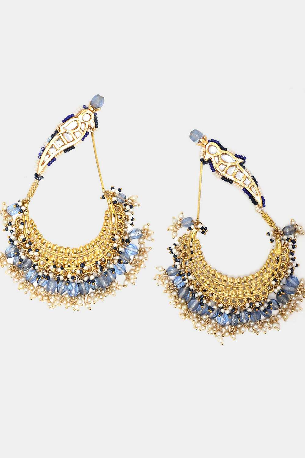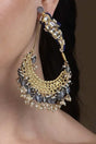 Upgrade your outfit with our Earring a dazzling pair of earrings designed to make a statement. Crafted from Alloy and adorned with Kundan, Pearls, Natural Stones, Faux Blue Sapphire these earrings are perfect for Partywear. Lightweight and versatile, they complement both traditional and modern outfits. Pair them with a matching necklace or wear them solo for effortless glamour
