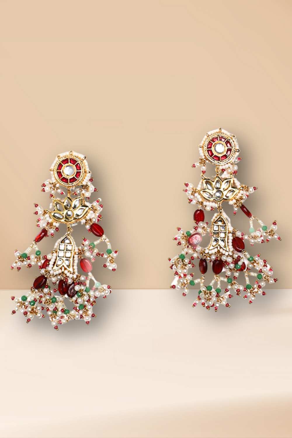 Upgrade your outfit with our Earring a dazzling pair of earrings designed to make a statement. Crafted from Alloy and adorned with Kundan, Pearls, Natural Stones, Faux Ruby these earrings are perfect for Partywear. Lightweight and versatile, they complement both traditional and modern outfits. Pair them with a matching necklace or wear them solo for effortless glamour