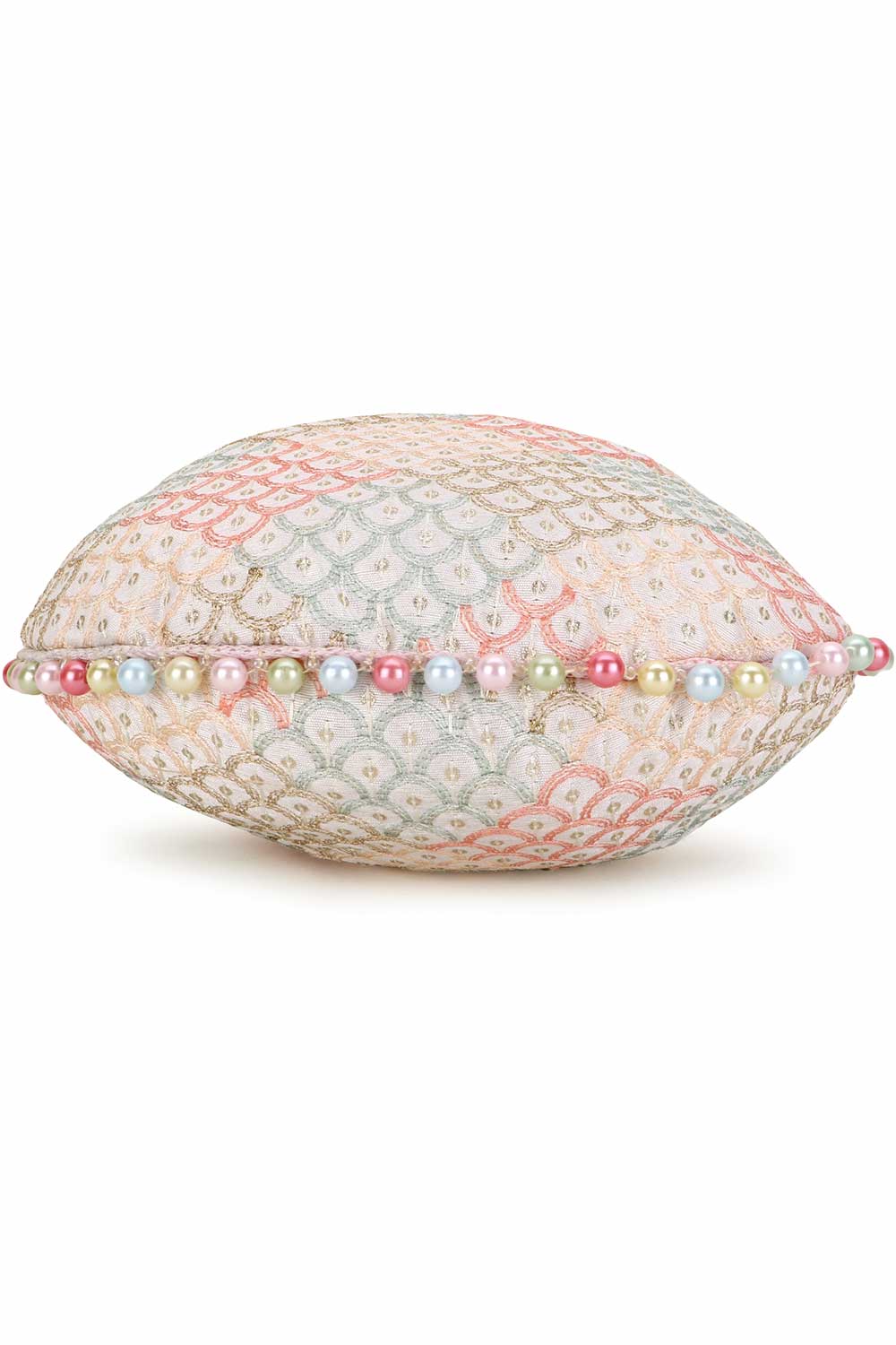 Off White And Pastel Multi Faux Silk Sequin Embroidered Potli