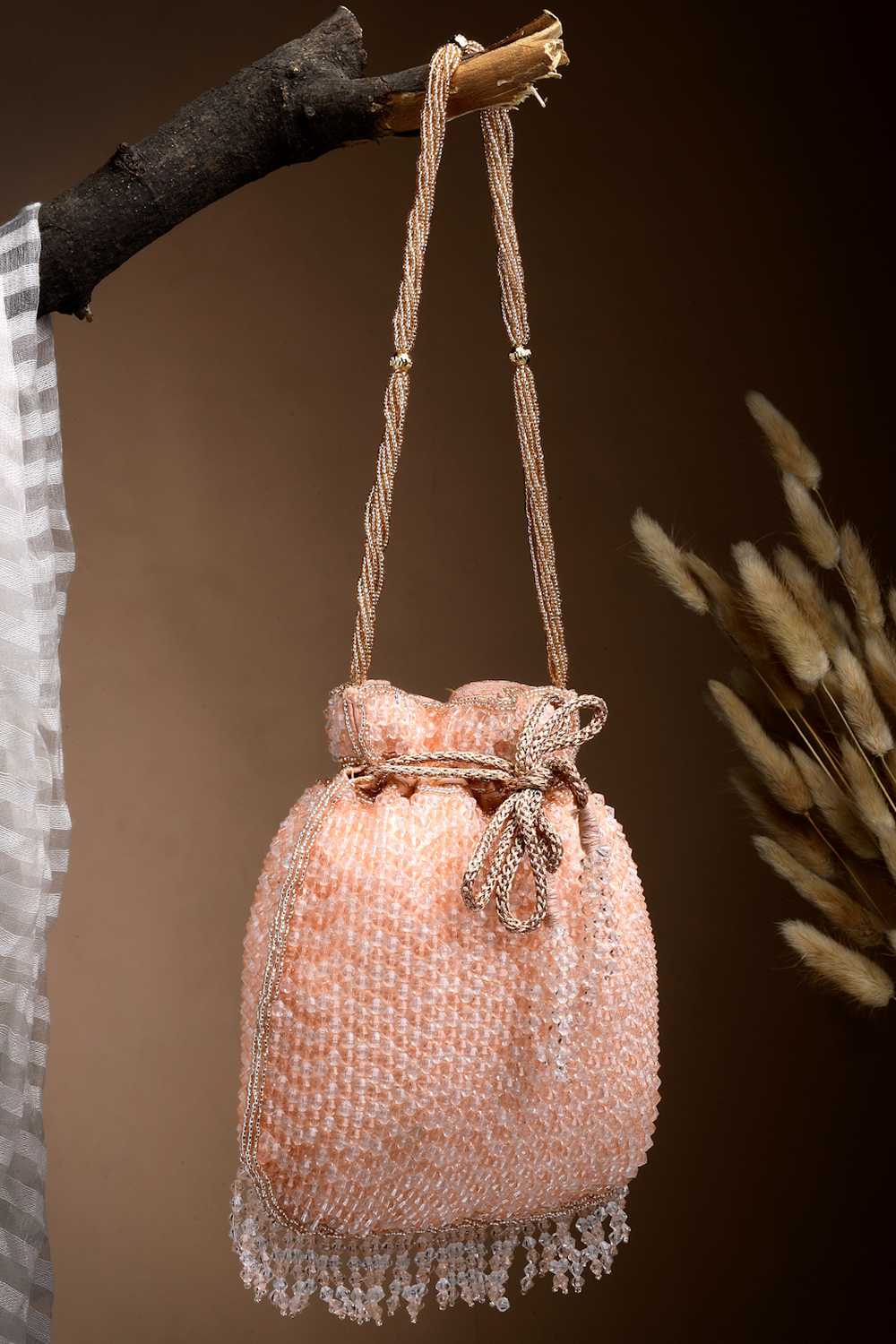 Stay stylish on the go with our Potli a must-have bag for every fashionista. Crafted from premium Faux Silk and adorned with Striped Embellished this bag combines elegance and practicality. Whether for Wedding or daily use, it’s your ultimate style companion