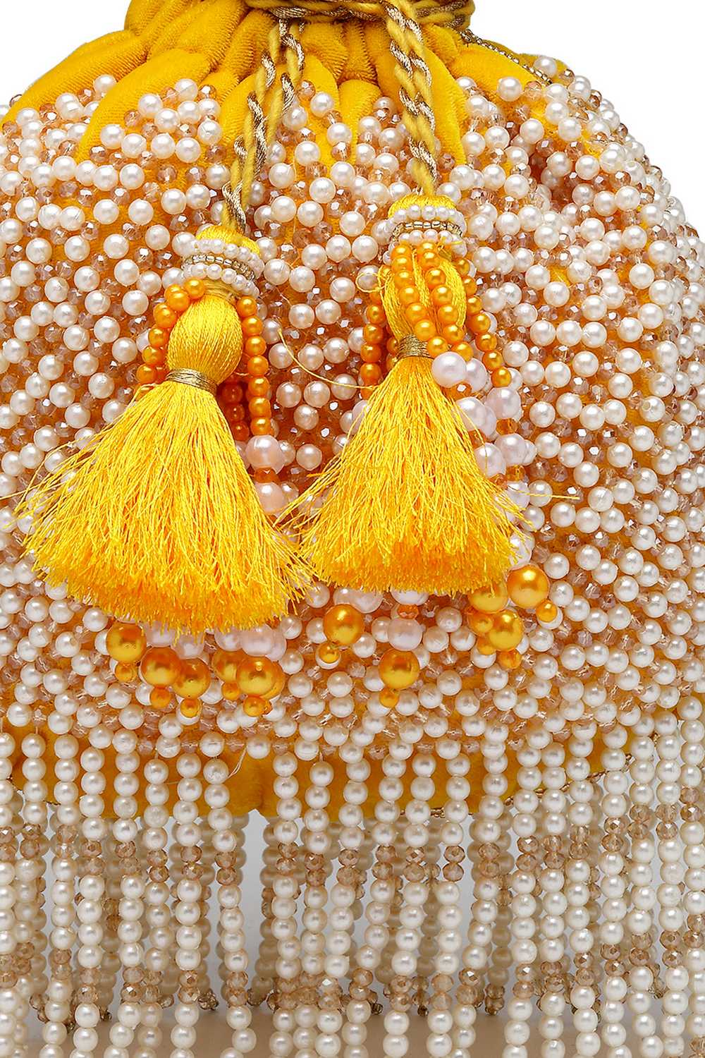 Yellow Embellished Velvet Potli