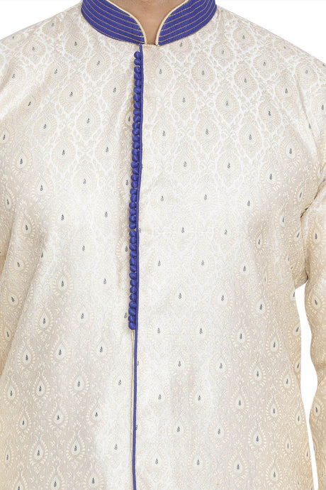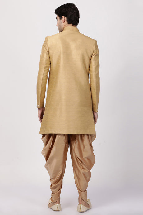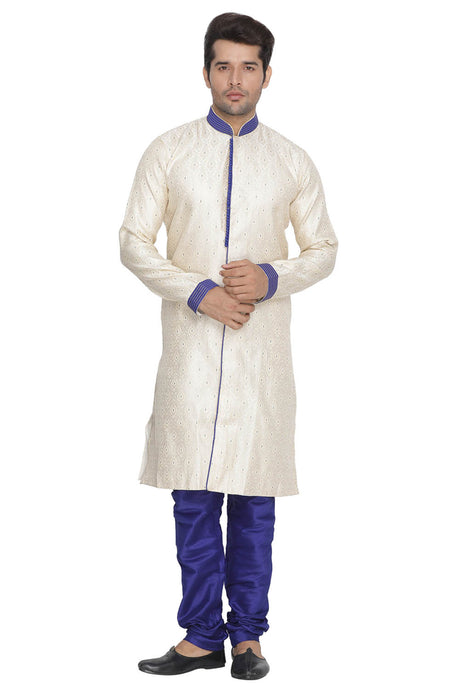 Men's Art Silk Sherwani Set In Beige
