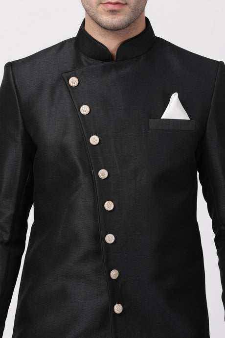 Men's Art Silk Sherwani Set In Black