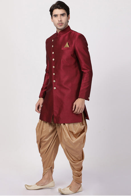 Men's Art Silk Sherwani Set In Maroon