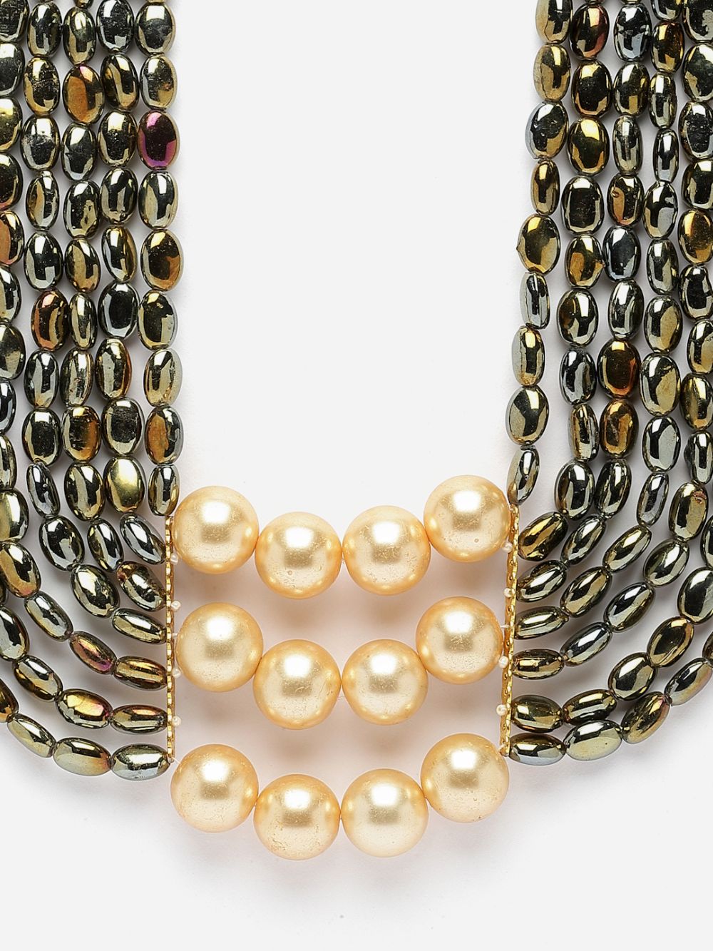Black And Cream Layered Necklace With Pearls And Natural Stones
