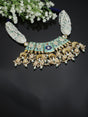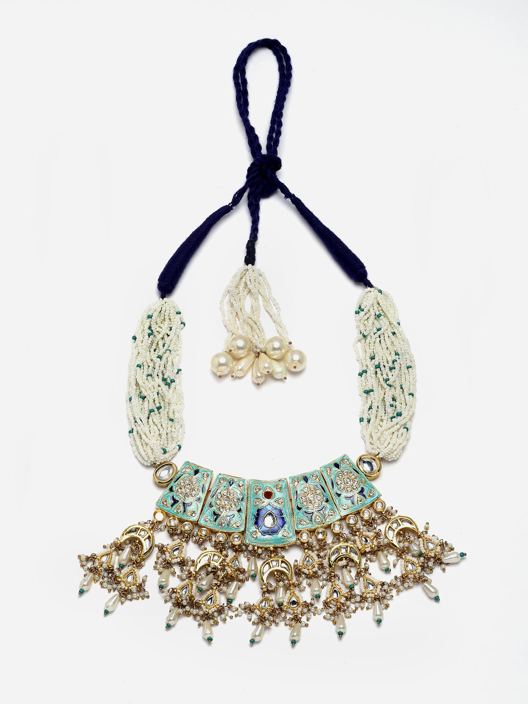 Blue And Cream Gold-Plated Kundan And Pearls Haar Necklace