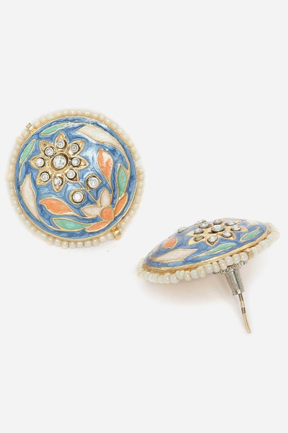 Blue And Pink Stud Earring With American Diamonds And Pearls