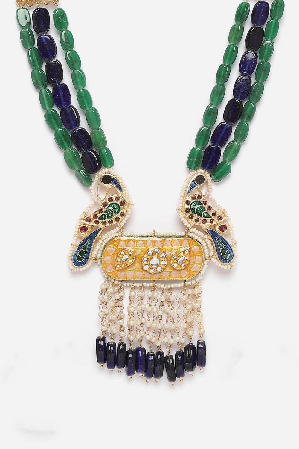Blue And Yellow Haar Necklace With Kundan And Pearls