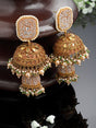 Brown And Cream Gold-Plated American Diamonds And Pearls Jhumkas Earring