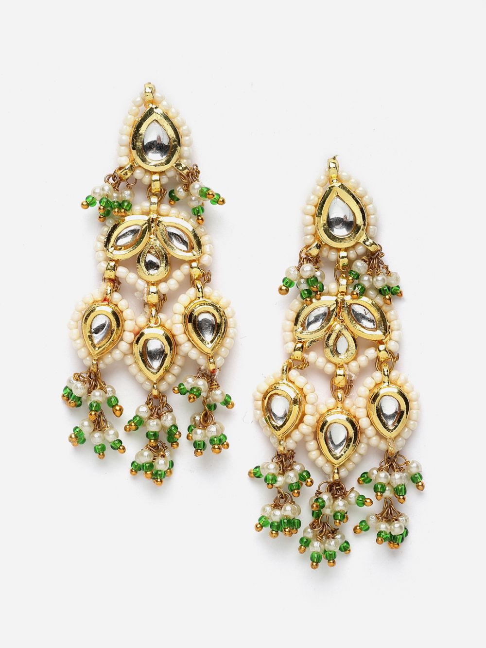 Green And Gold Necklace With Earring Jeweler Set With Kundan And American Diamonds