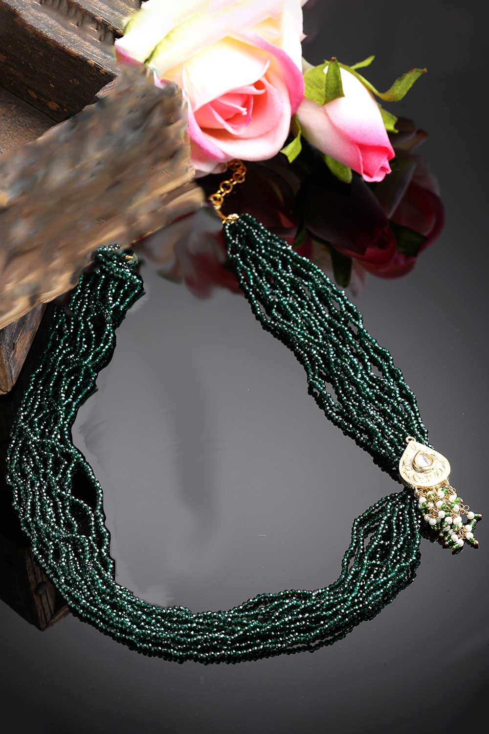 Green And Peach Gold-Plated Kundan And Pearls Bead Necklaces