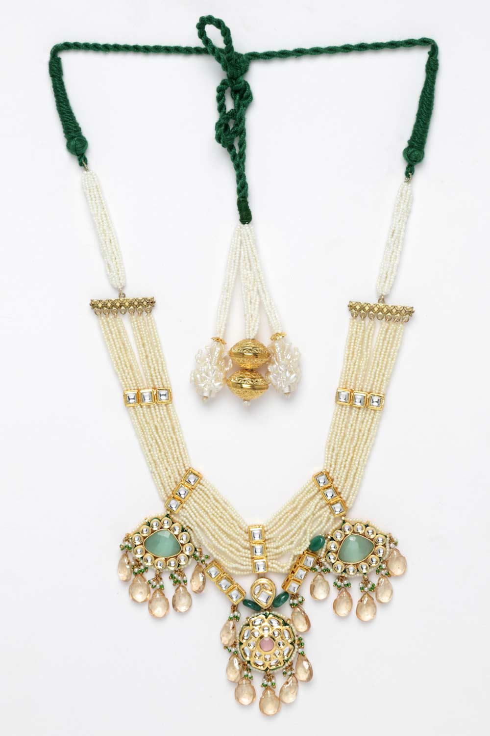 Green And Pink Gold-Plated Kundan And Pearls Bead Necklaces