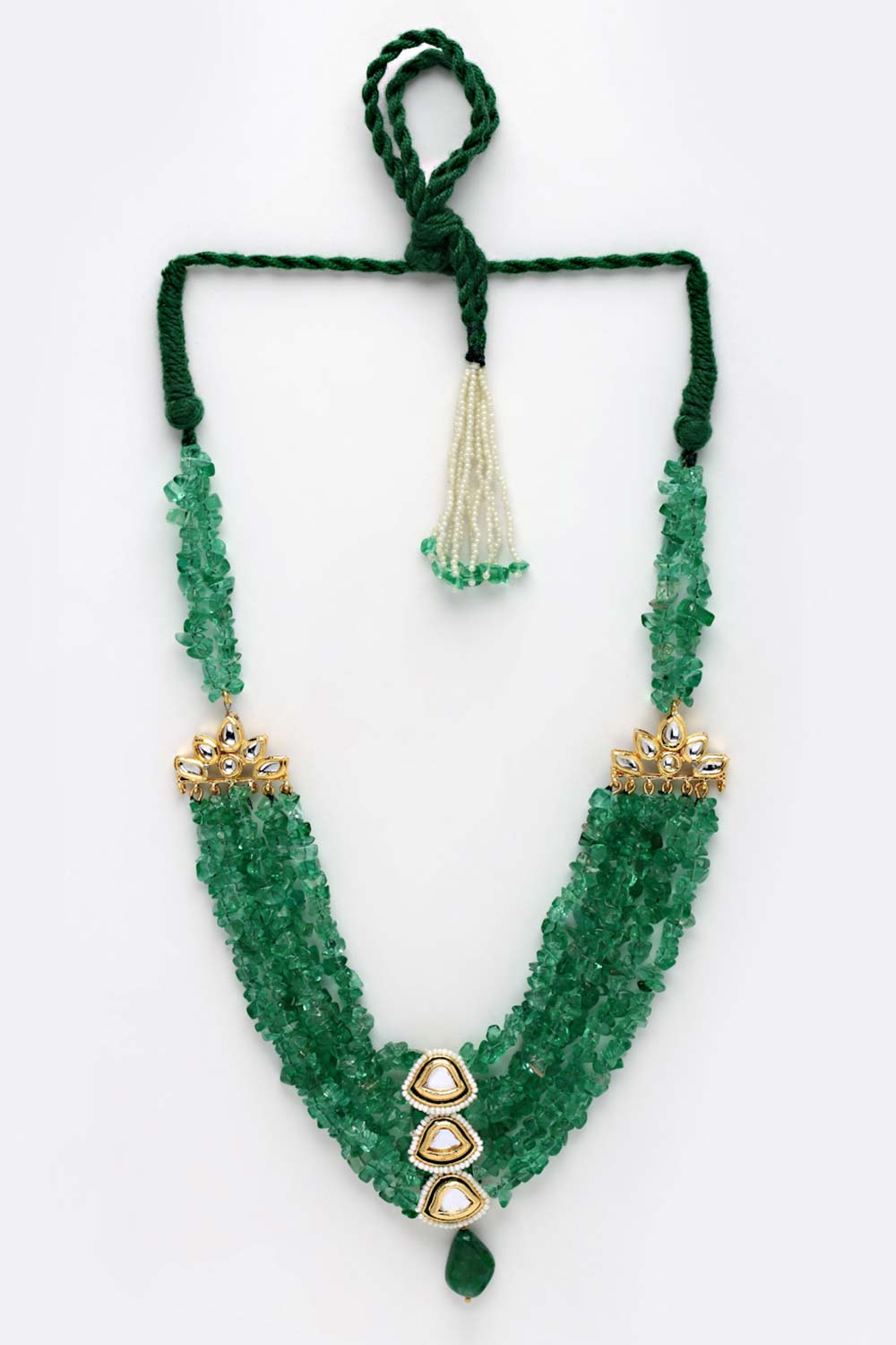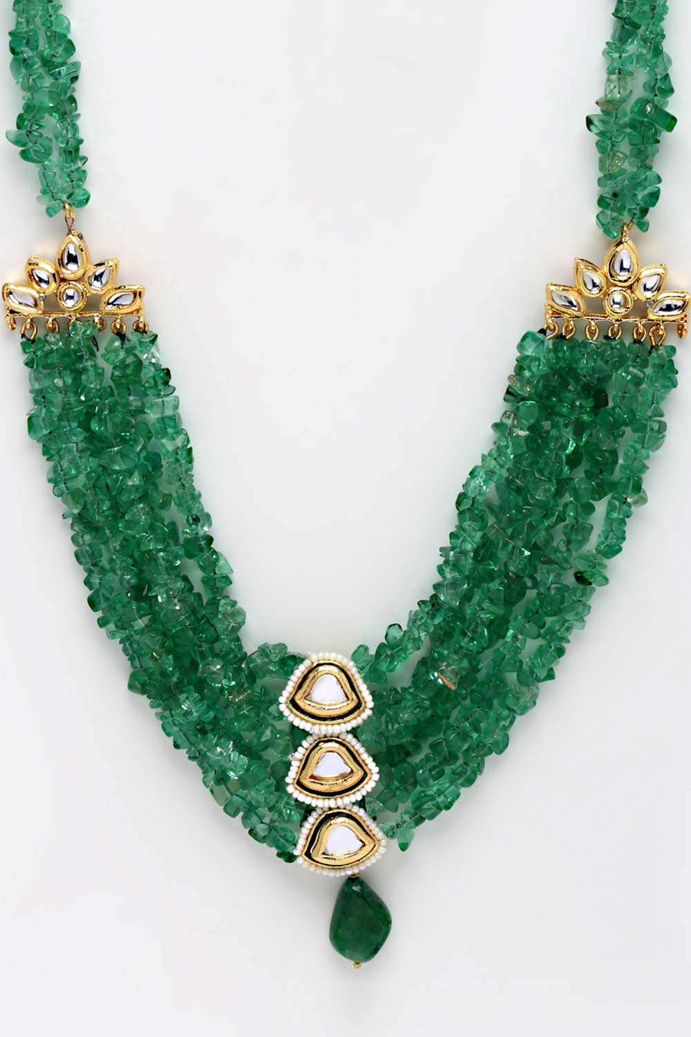 Green And White Gold-Plated Kundan And Pearls Necklace