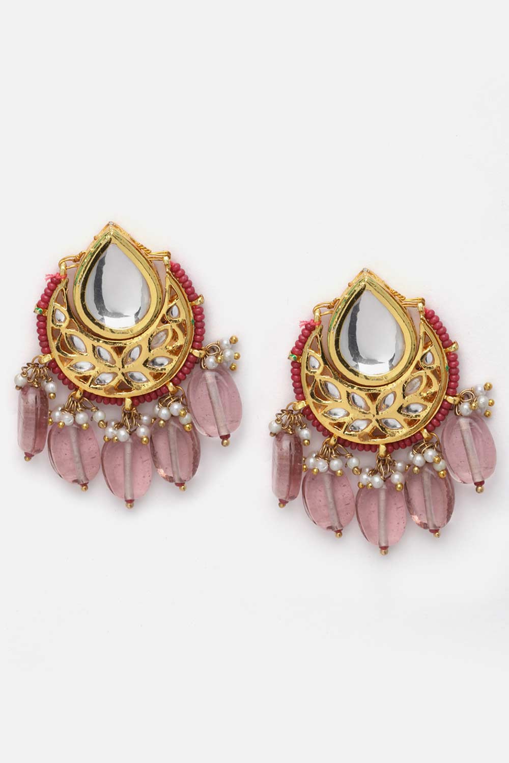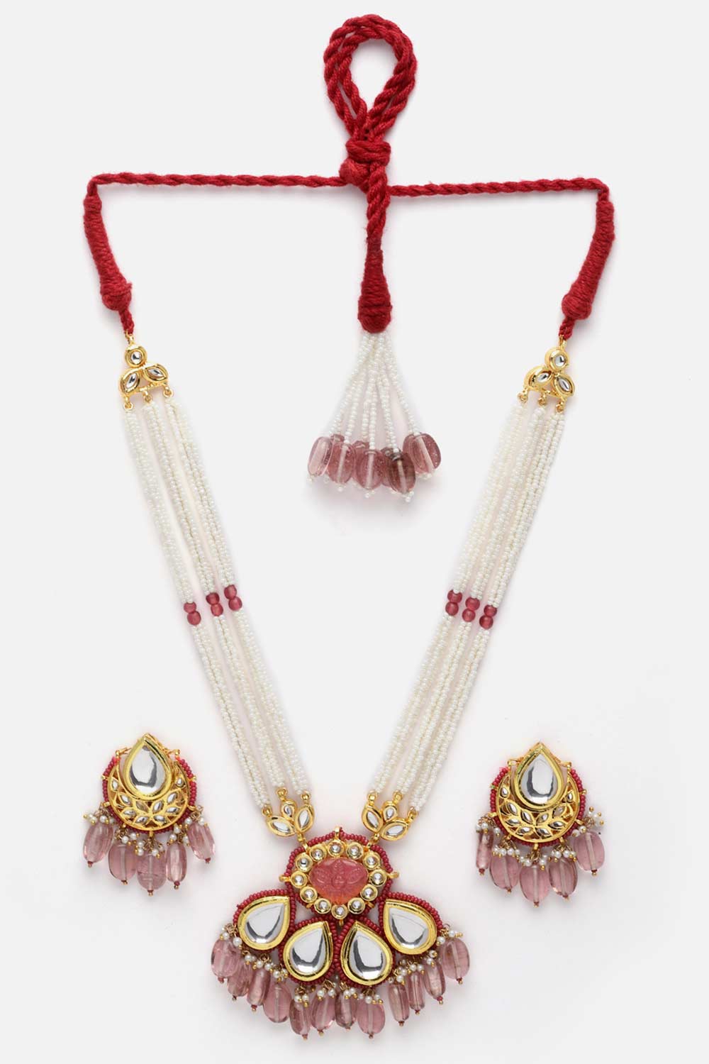 Purple And Gold Kundan And Pearls Necklace And Earring Set