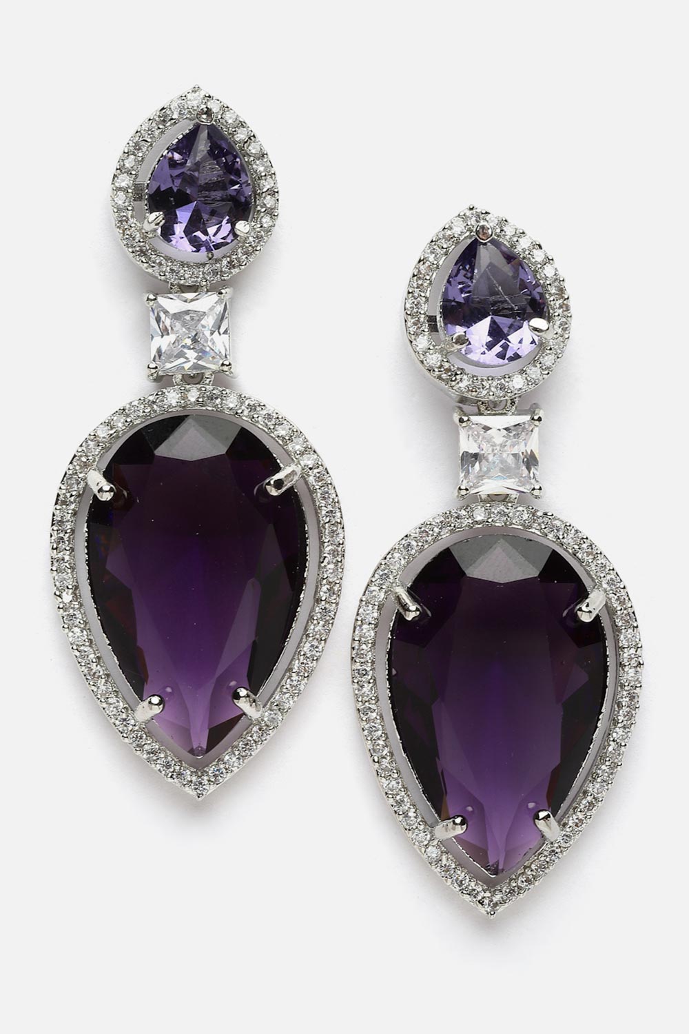 Purple And Silver Drop Earring With American Diamond And Natural Stones
