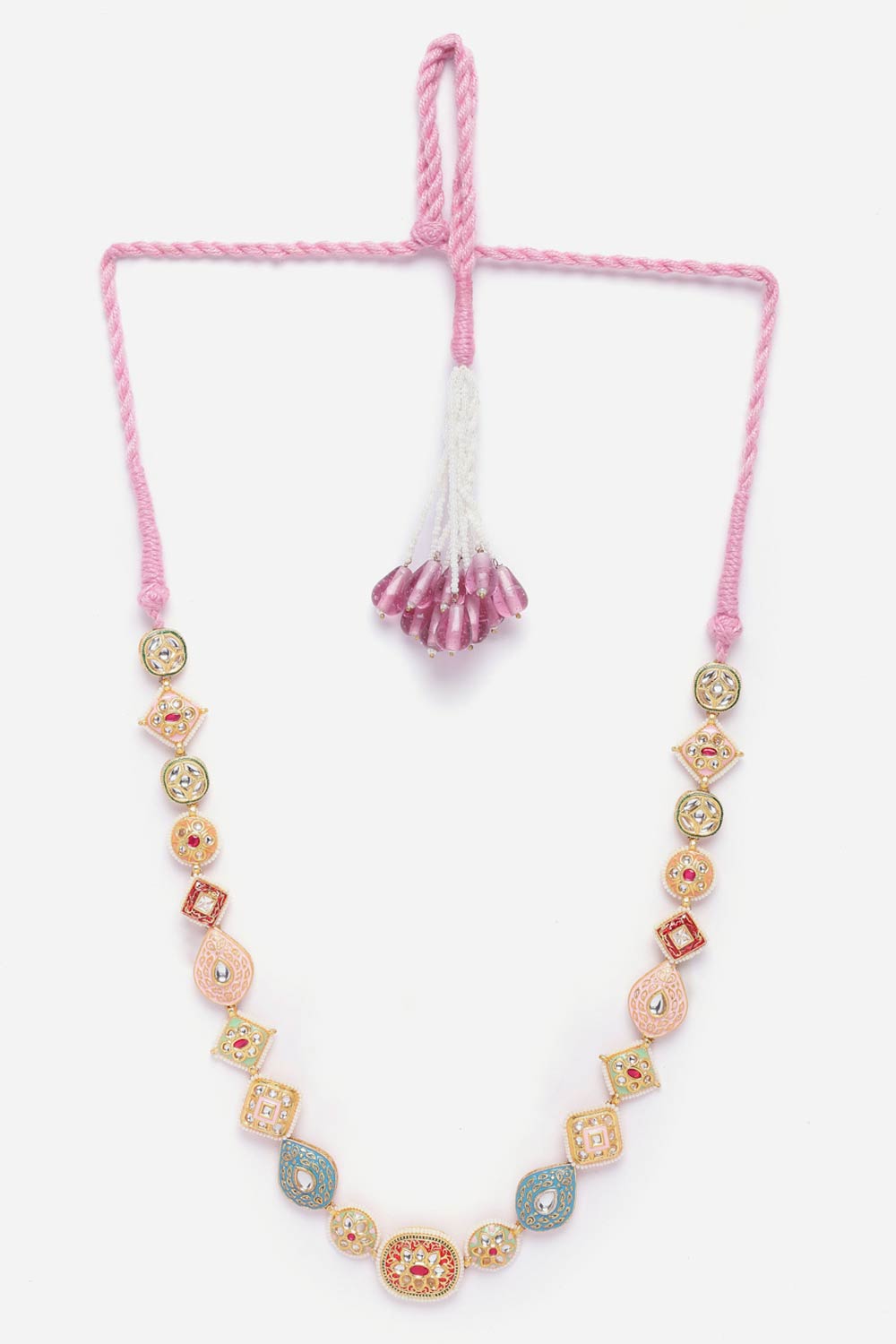 Red And Pink Haar Necklace With Kundan And Pearls