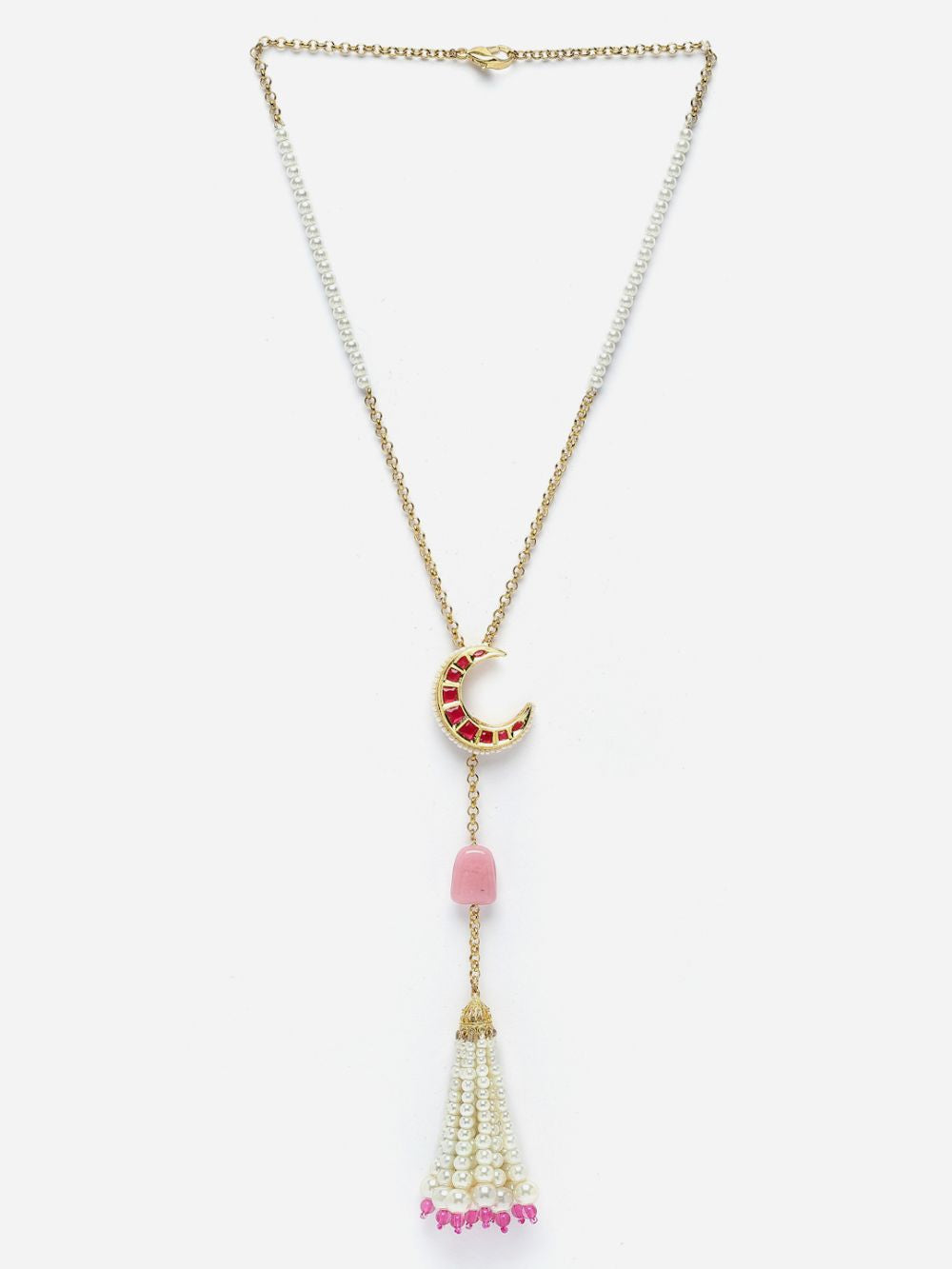 Red And Pink Haar Necklace With Pearls And Natural Stones