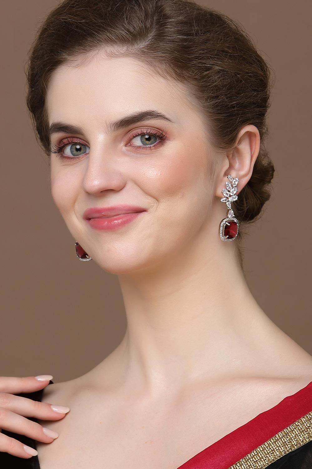 Red And Silver Drop Earring With American Diamond And Natural Stones