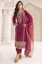 Red Floral Embroidered Chiffon Pakistani Suit Set
