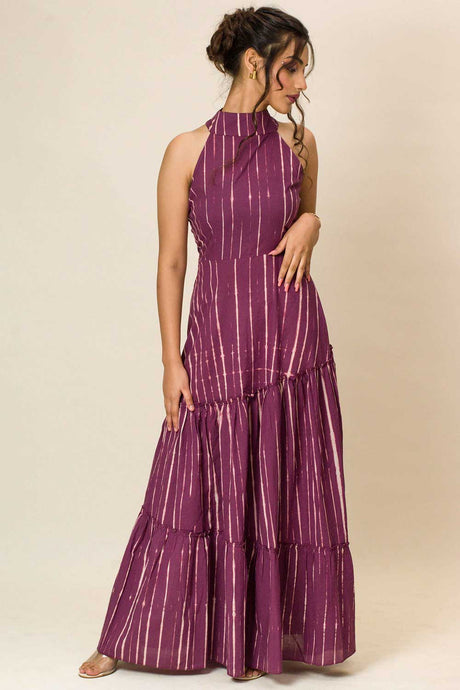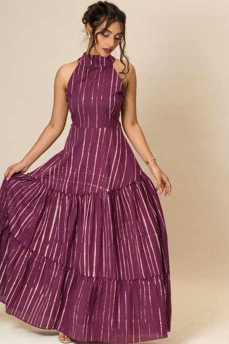 Burgundy Ethnic Cotton Floral Printed Flared Dress