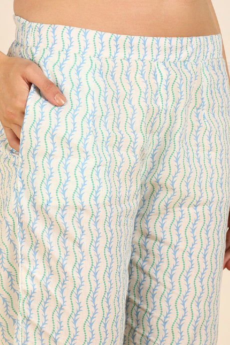 White Cotton Blend Floral Printed Straight Cut Suit Set