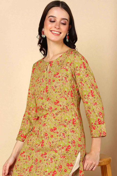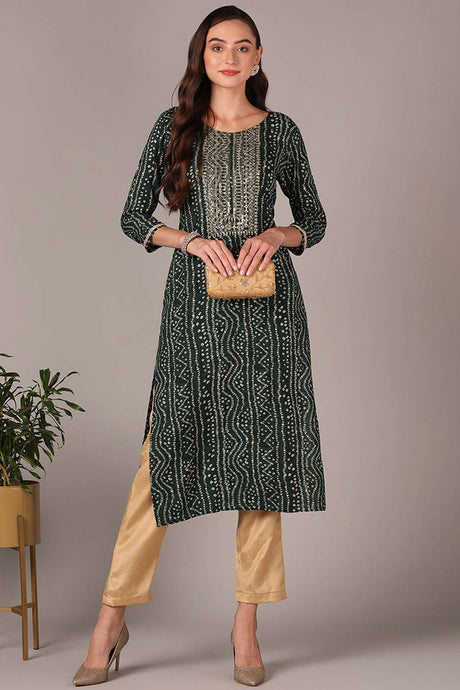 Teal Green Cotton Ethnic Printed Straight Kurti