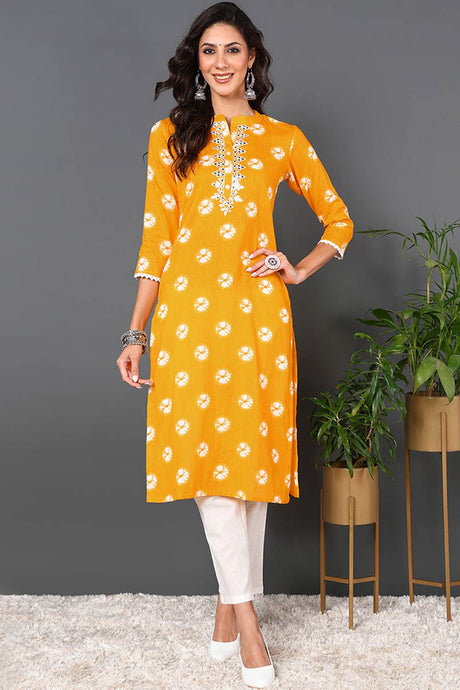 Blended Cotton Kalamkari Kurti Top In Yellow