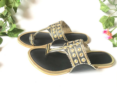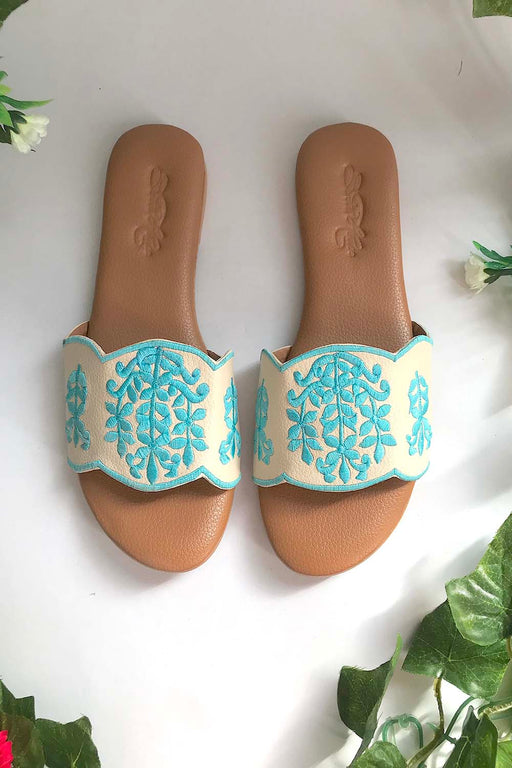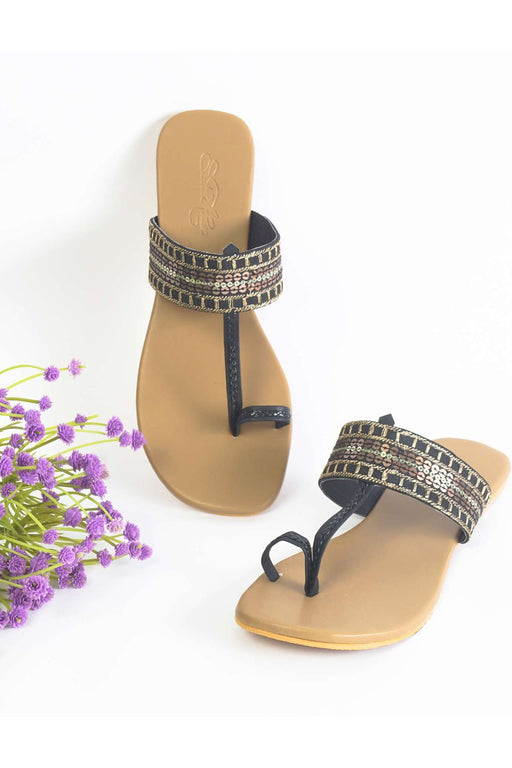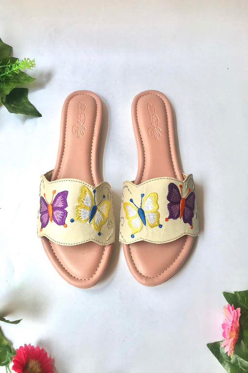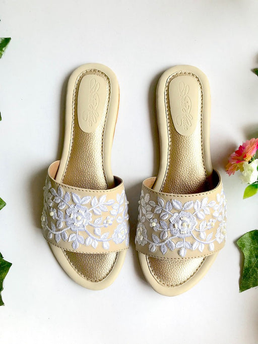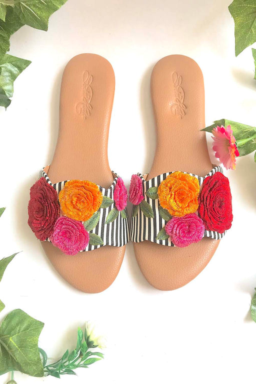 Soft Faux Leather Hand Embroidery Flats In Black And Cream