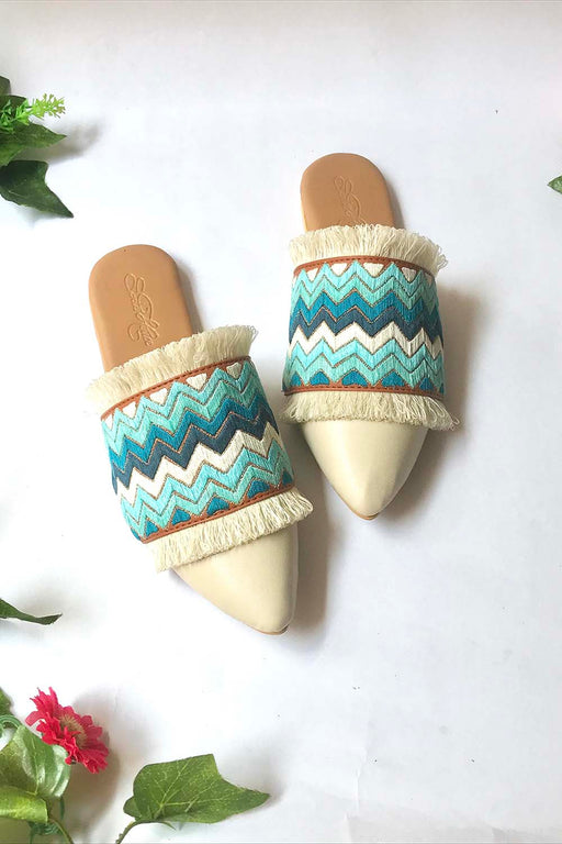 Soft Faux Leather Kolhapuri Flats In Sea Green
