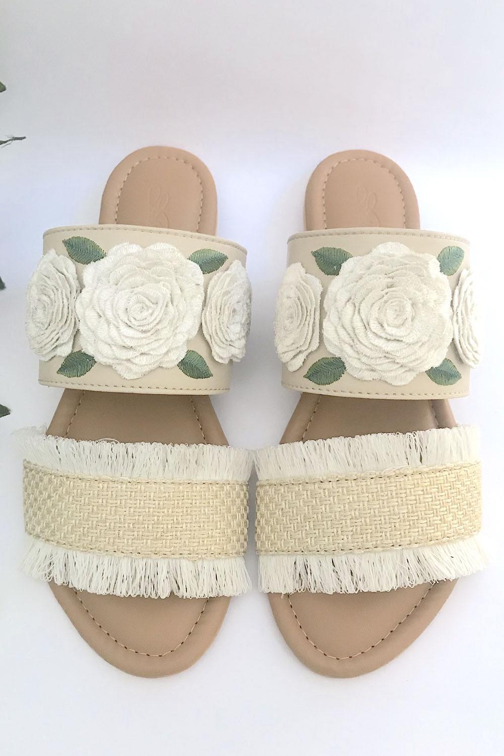 Double Strap Jute with Cream Fringe with Two Tone leaves and Roses