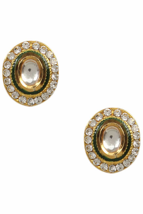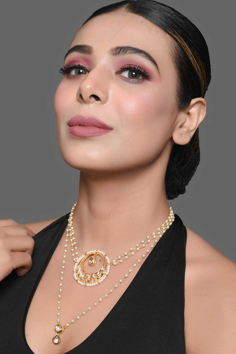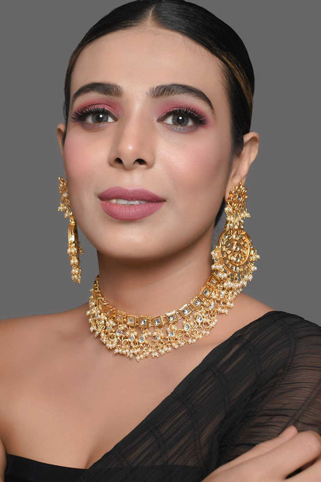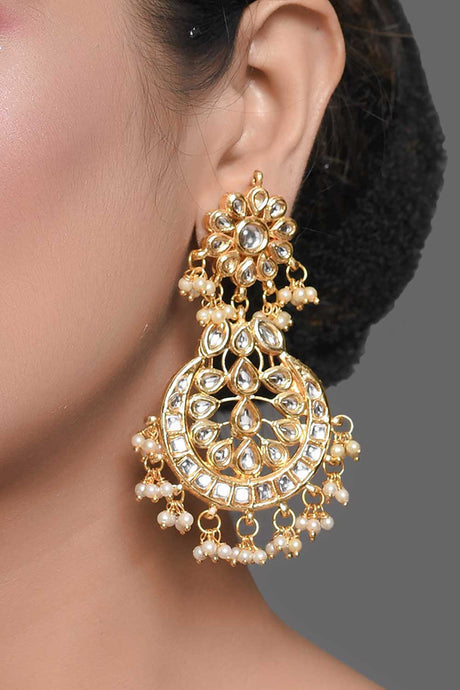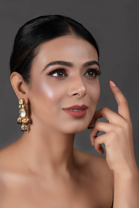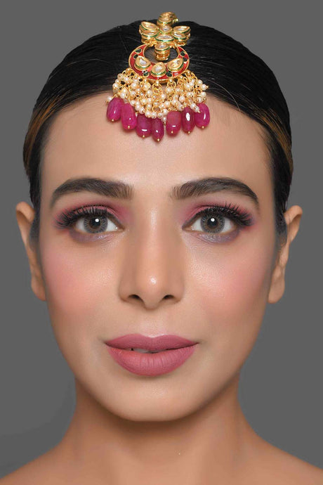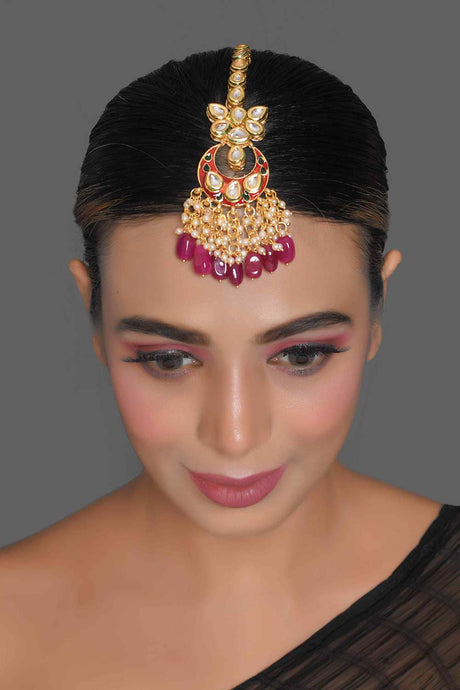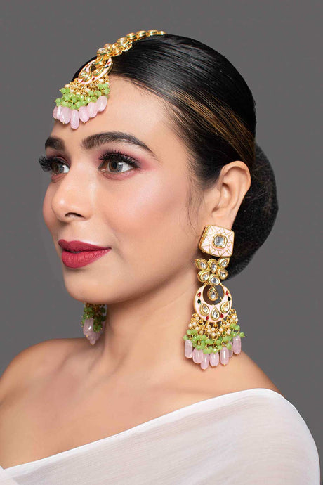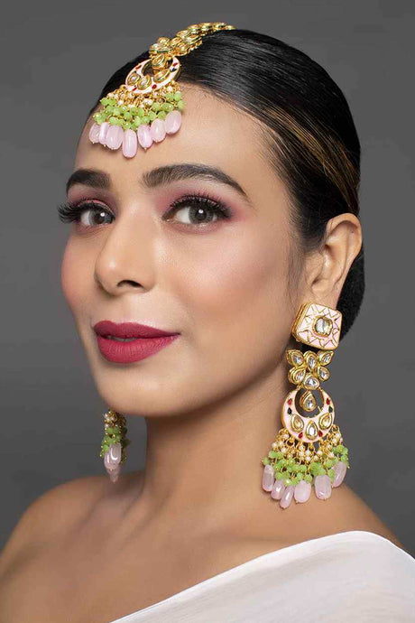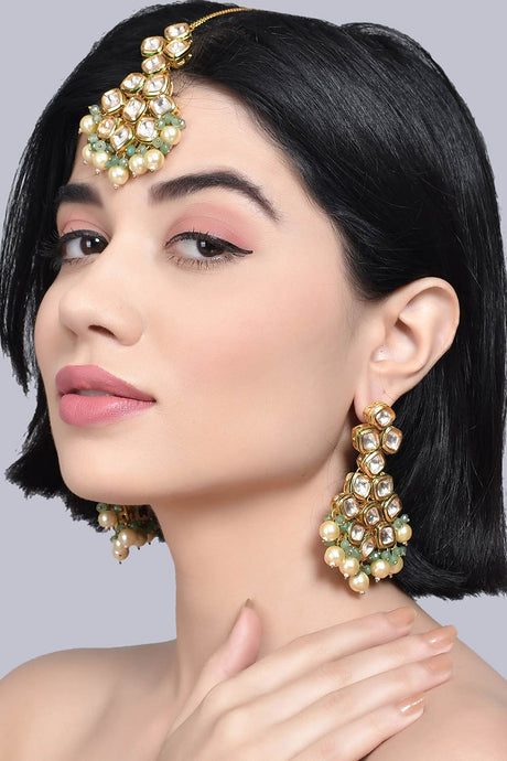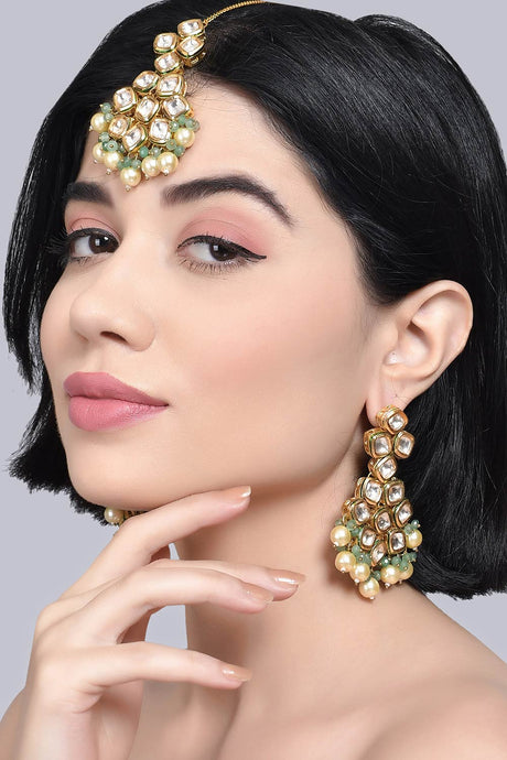 Golden Kundan & Beads Alloy Earrings with Maang Tikka