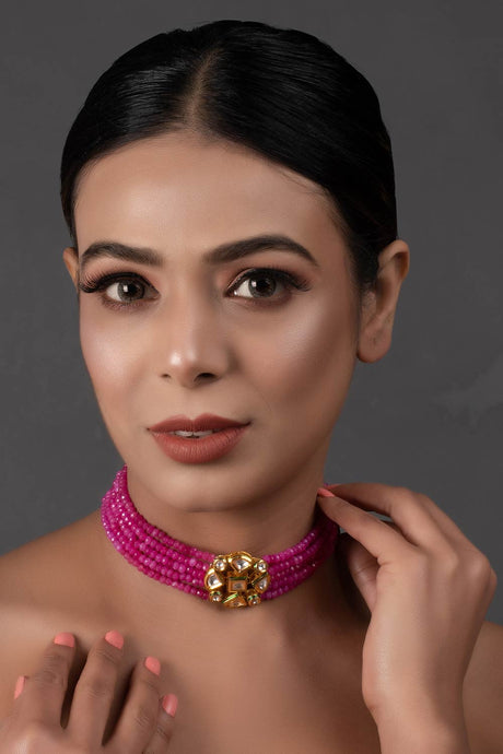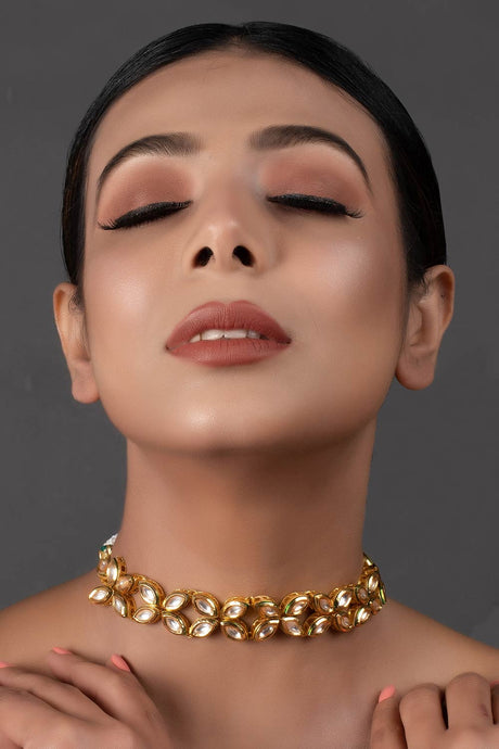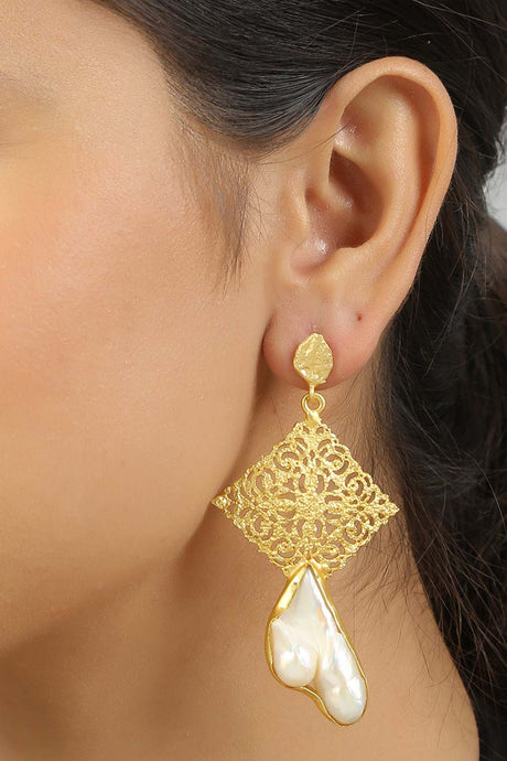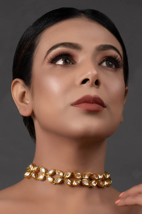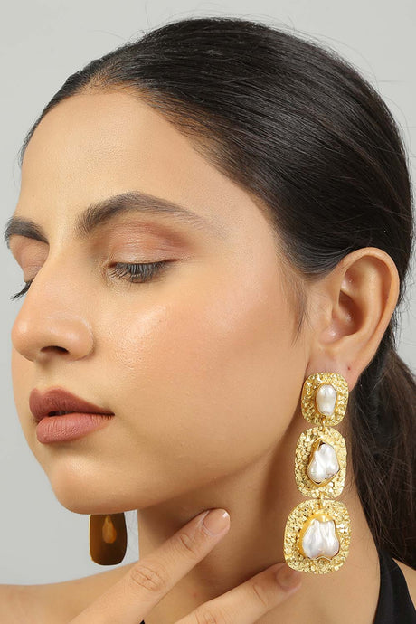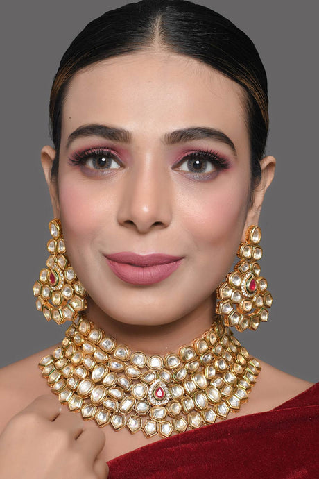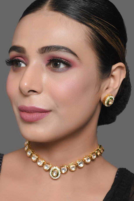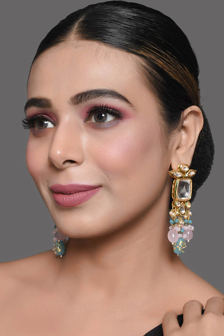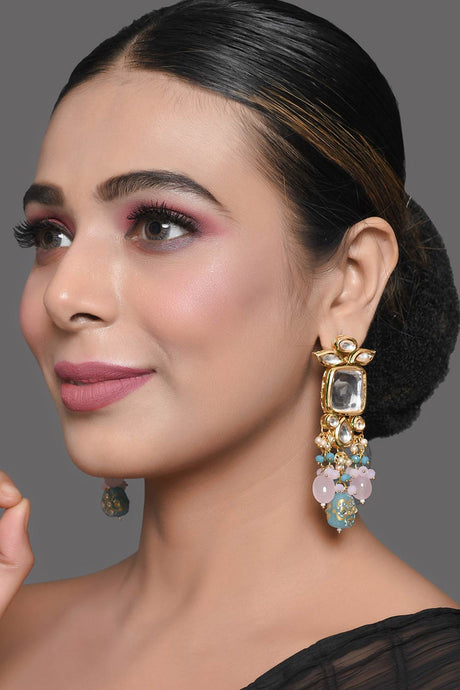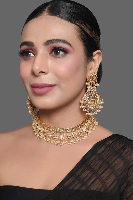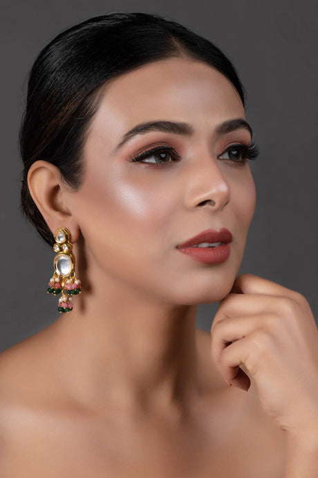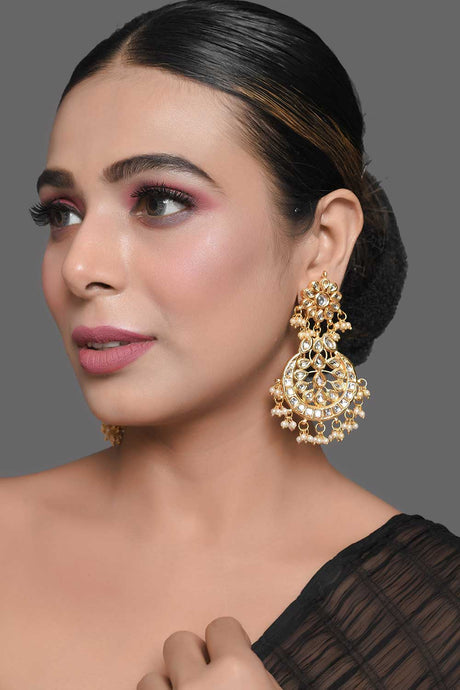 Golden Kundan & Beads Alloy Earrings with Maang Tikka