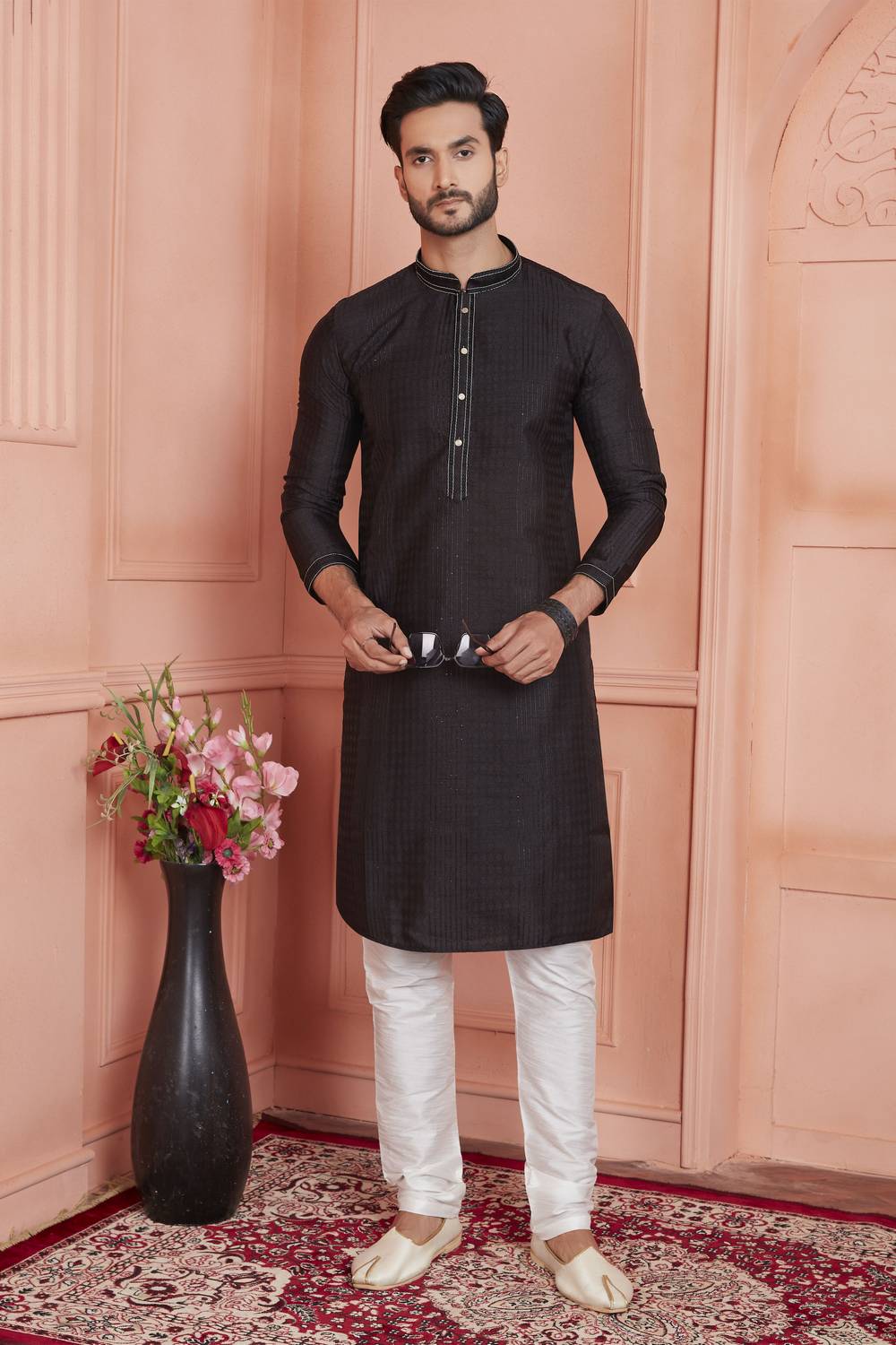 Experience timeless style with our Men's Kurta Sets a perfect balance of tradition and modern sophistication. Made from Jacquard this kurta set offers unmatched comfort and a refined look. Featuring Embroidered it reflects a rich heritage with a modern touch. Designed for Festive this outfit is perfect for special occasions or your celebrations. Complete the look with mojari shoes and a classic watch for a dapper appearance. Make every occasion special with the elegance of Men's Kurta Sets