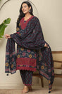 Blue Floral Printed Cotton Kurti Pant Set