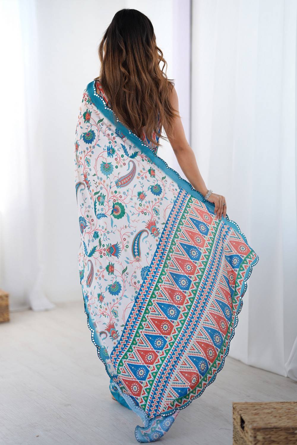 Elevate your wardrobe with our exquisite Saree a masterpiece crafted to add timeless elegance to your style. Made from Art Silk this saree offers a perfect mix of comfort and sophistication. Adorned with Floral Printed it showcases intricate craftsmanship that speaks volumes of tradition and artistry. Perfect for Party this saree is a versatile addition to your collection, ensuring you stand out effortlessly. Pair it with elegant Jewelry, for a glamorous look. Add Clutches or Potli Bags and complete the ensemble with Wedges & Heels , making it a perfect choice for any event. Make a statement and embrace the elegance of Saree today