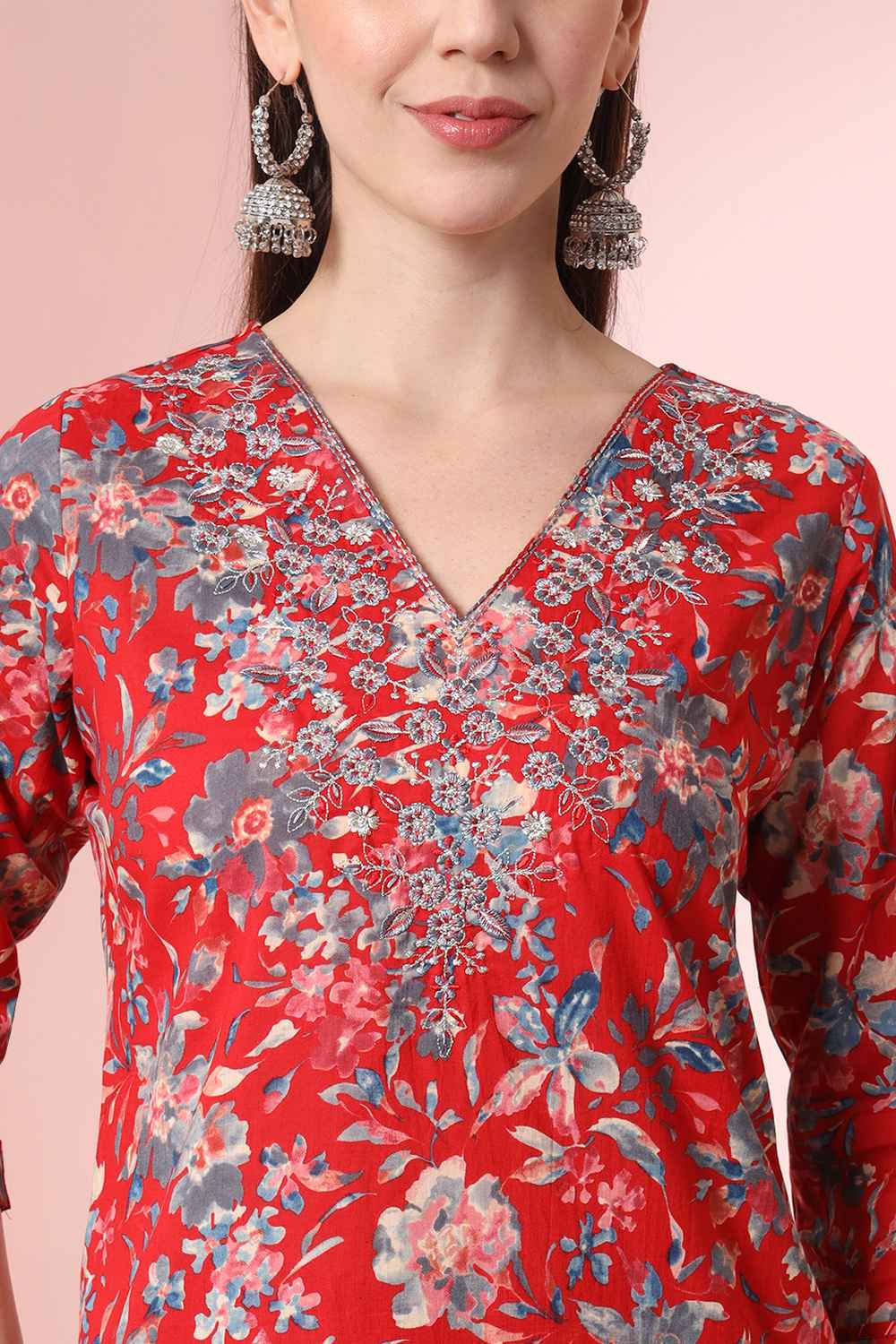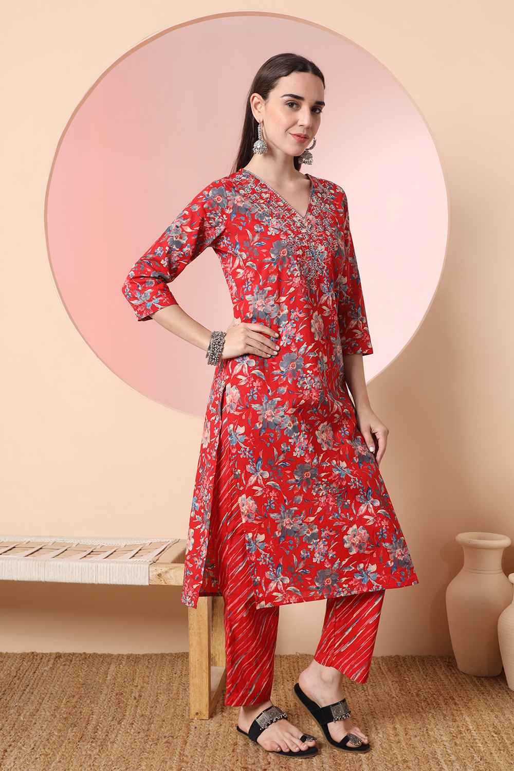 Stay stylish and comfortable with our Kurti Pant Set designed for all-day elegance. Made with Cotton this set is perfect for easy movement and timeless appeal. The beautiful and intricate Floral Print elevate its design for Casual or daily wear, this kurti set is your go-to outfit. Pair it with elegant earrings and kolhapuri sandals or a heels for a traditional look or wedges for a modern edge
