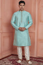 Sky Blue Embroidered Jacquard Kurta Pyjama Set