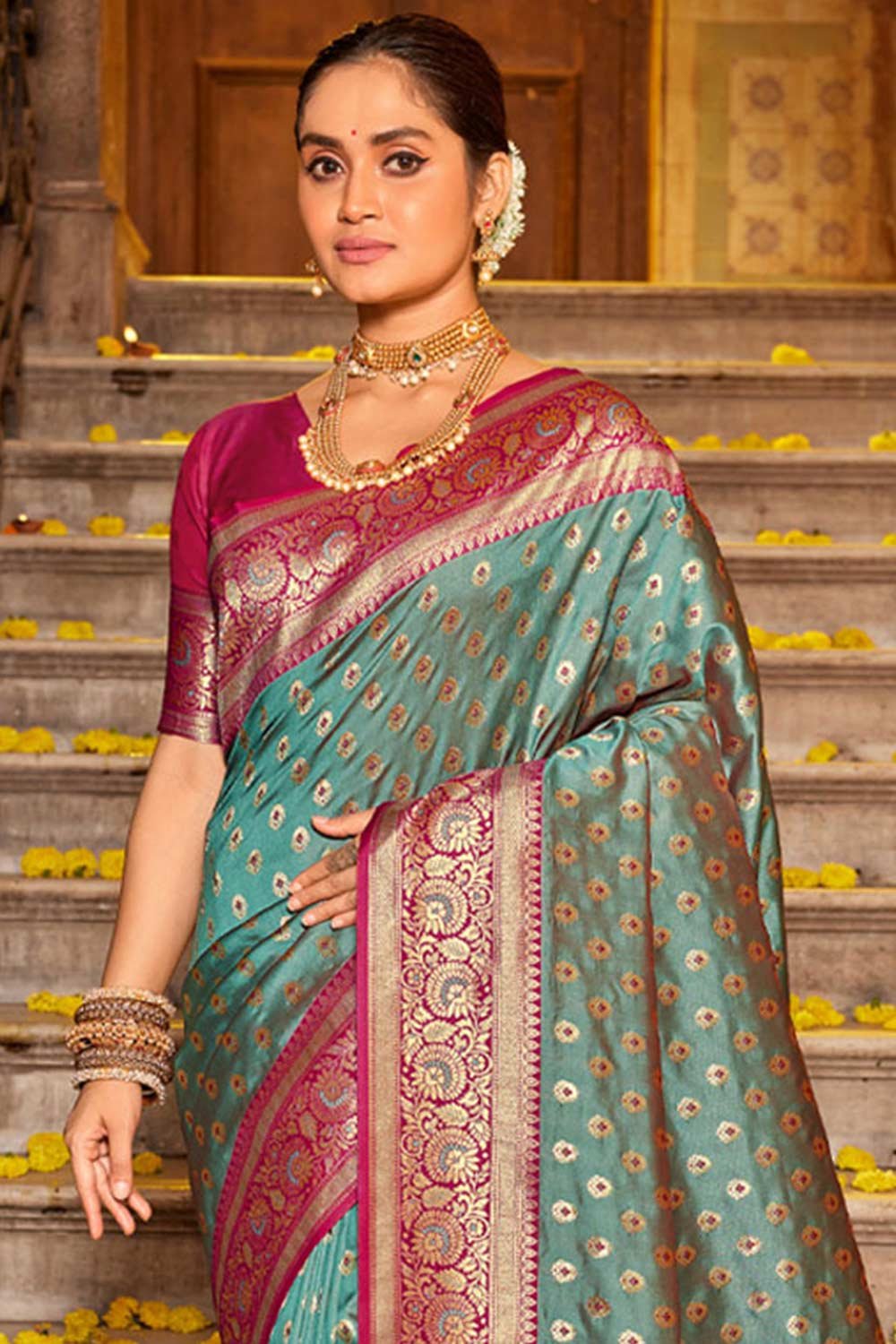 - Saree Color: Teal