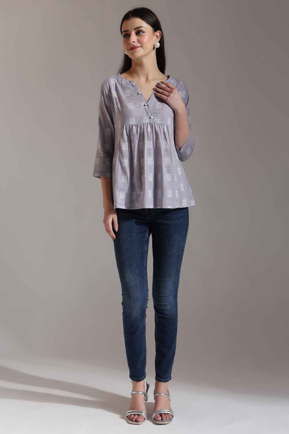 Stay on-trend with our Tops & Tunics a perfect choice for the modern woman. Crafted with lightweight Pure Cotton this piece is designed to keep you comfortable and chic all day long. The Geometric Printed add a contemporary edge, making it a versatile wardrobe staple. Whether for casual outings, this top/tunic seamlessly elevates your style. Pair it with skinny jeans, a tote bag, and loafers for a casual vibe or statement earrings and wedges for a more polished look. Add an effortless flair to your wardrobe with Tops & Tunics