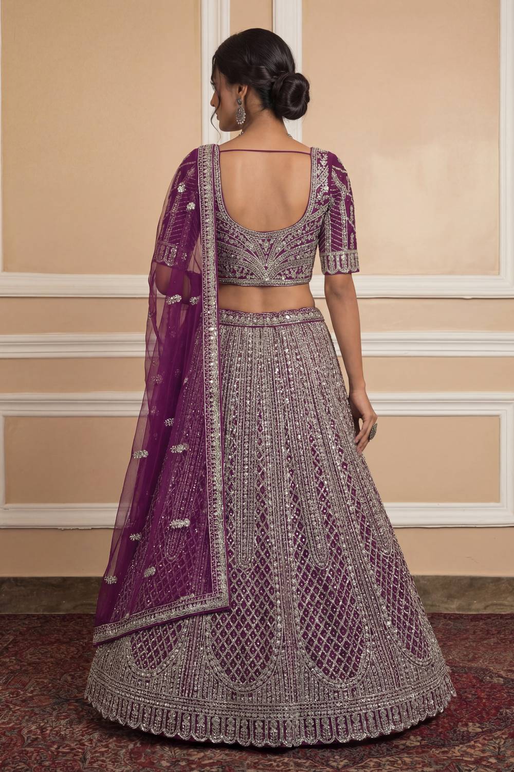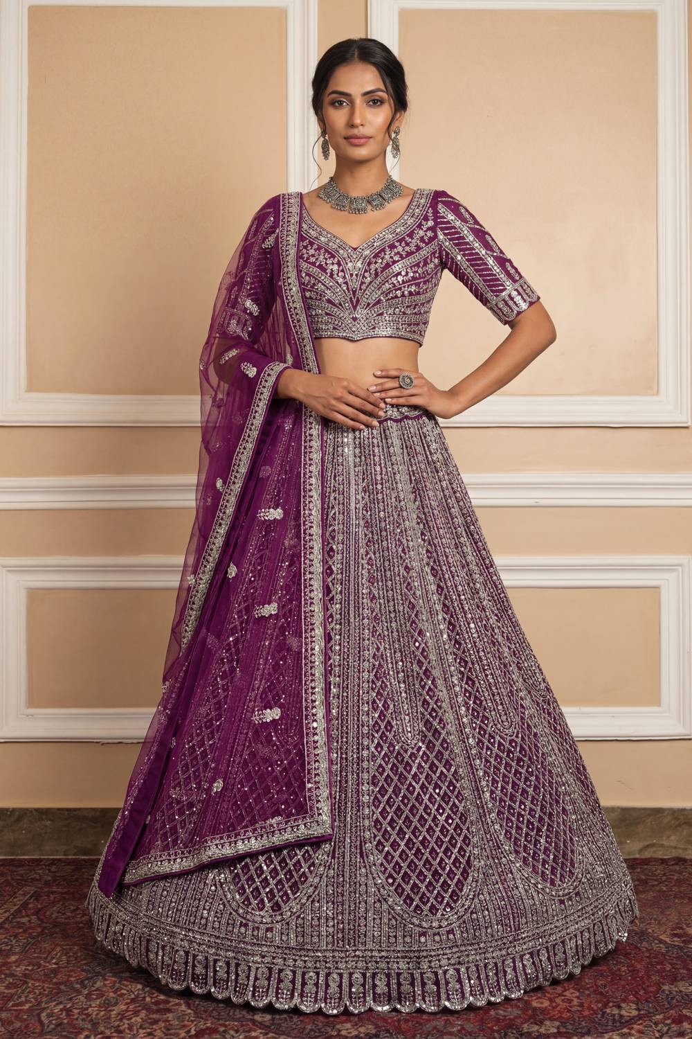 Violet Sequin with Embroidered Net Lehenga