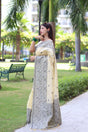 Cream Banglori Handloom raw silk saree with all over weaving Butties and weving pallu with running blouse piece