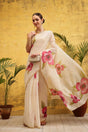 Beige Floral Printed Cotton Blend Ready to Wear Saree