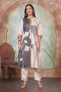Off White Floral Printed Silk Kurti Pant Set