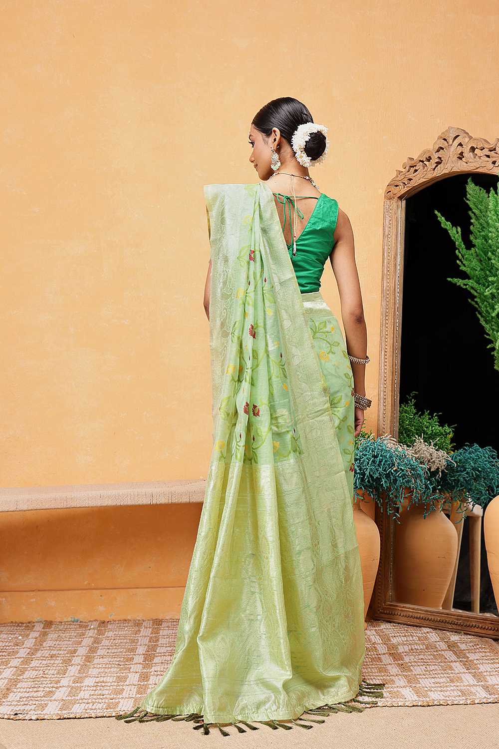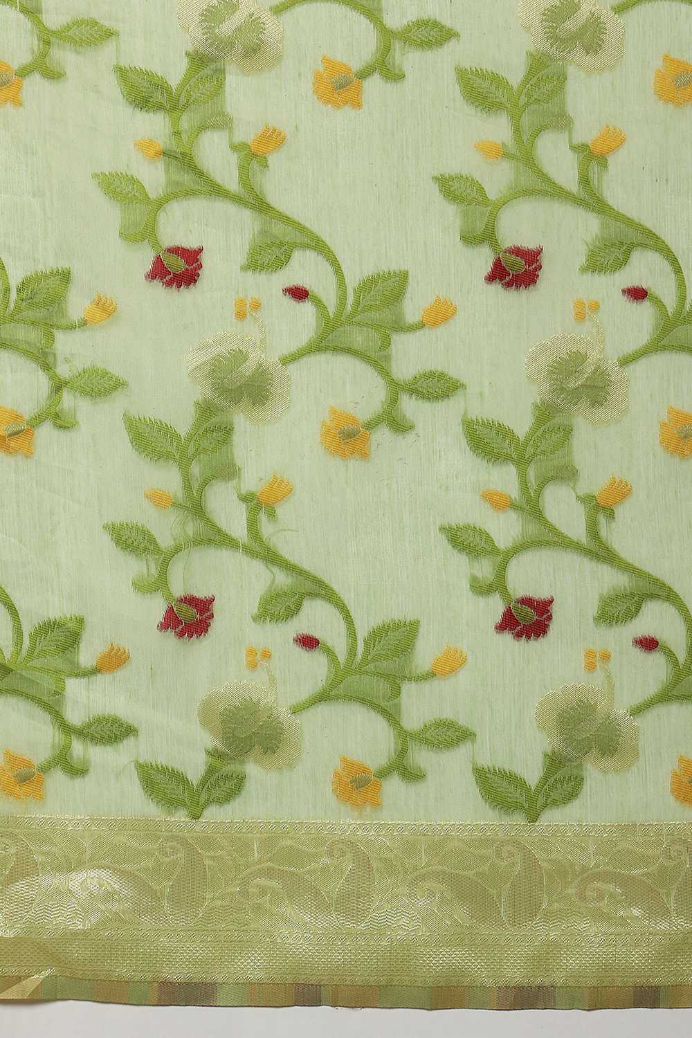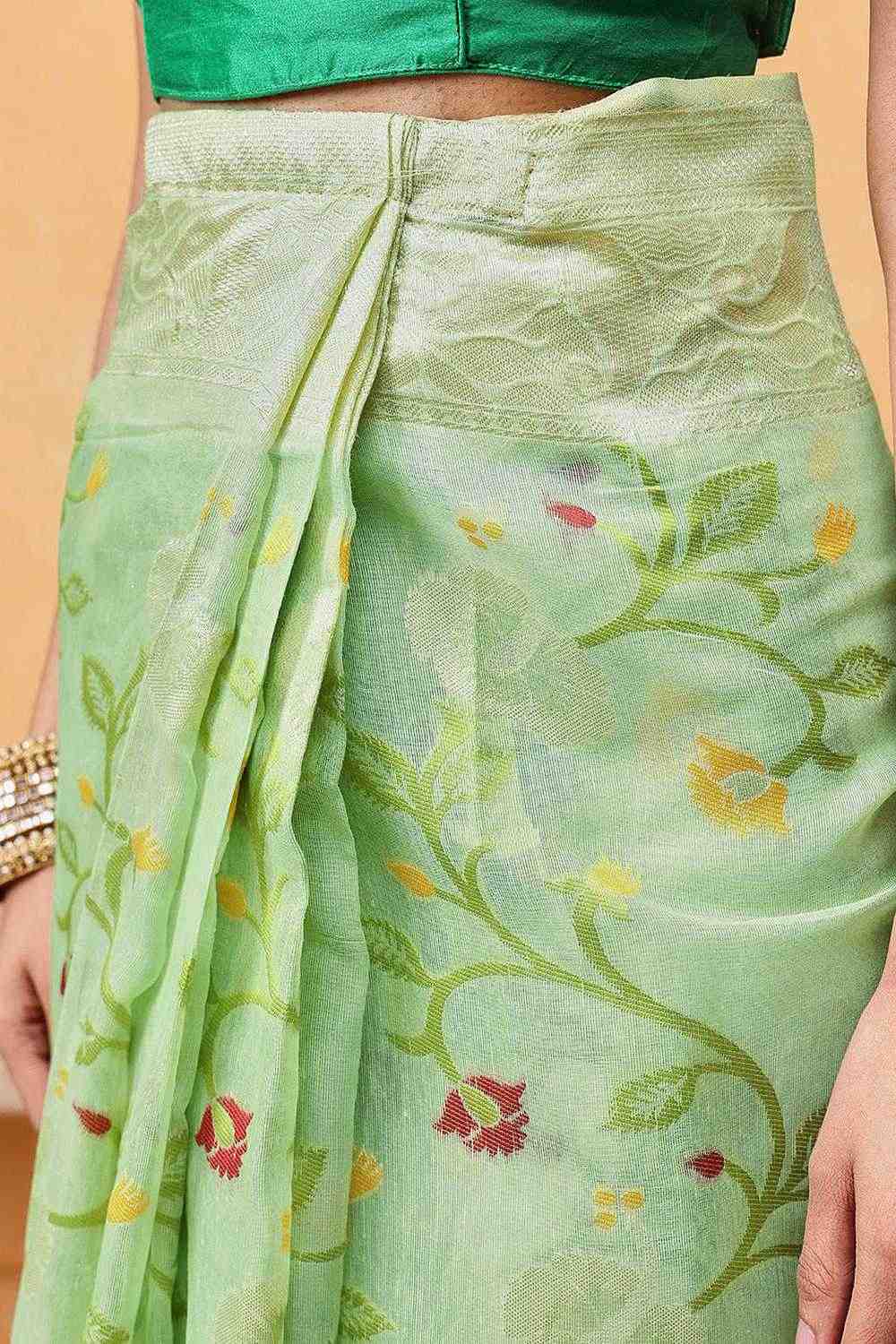 Dark Green Floral Woven Cotton Ready to Wear Saree