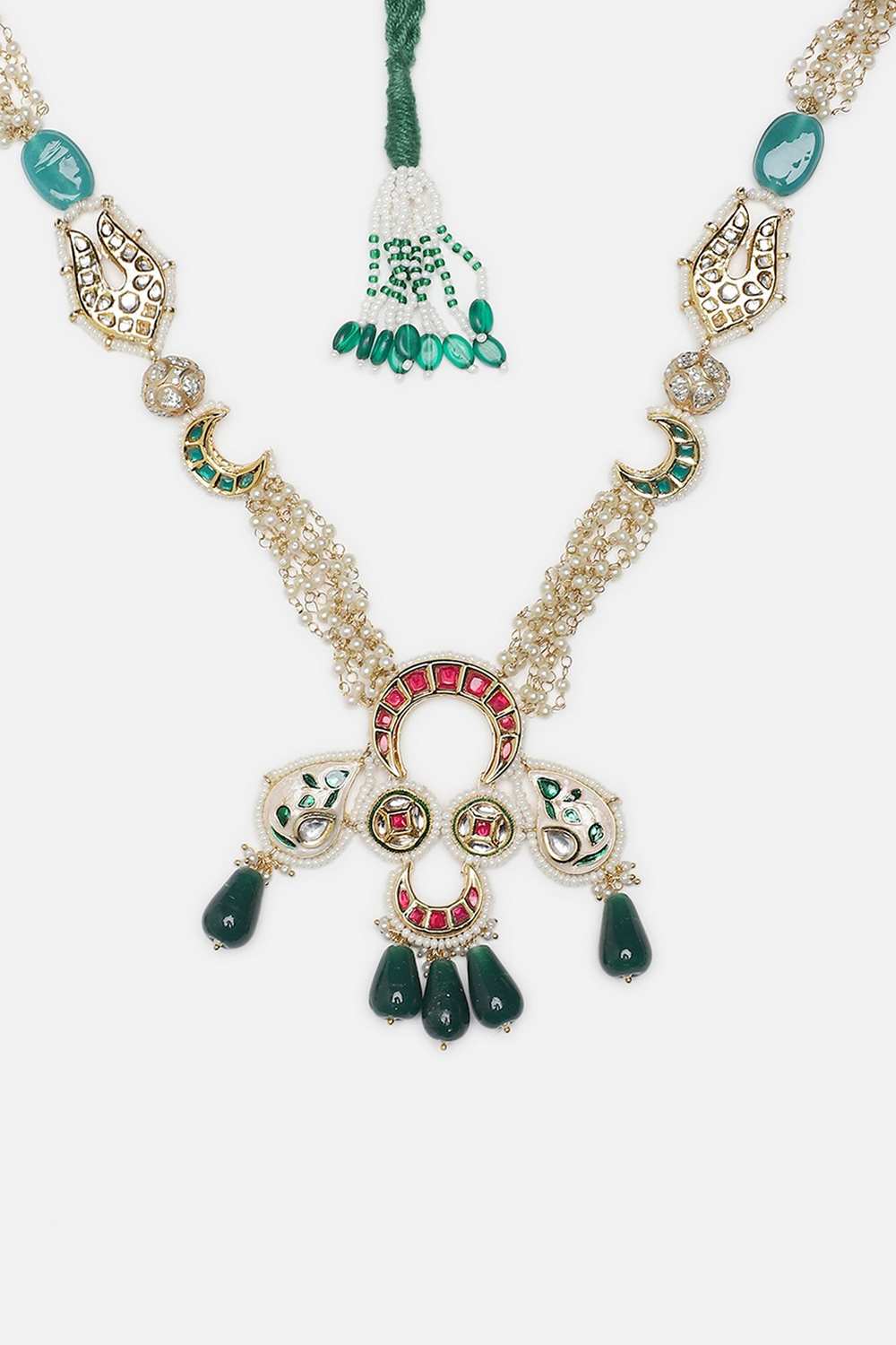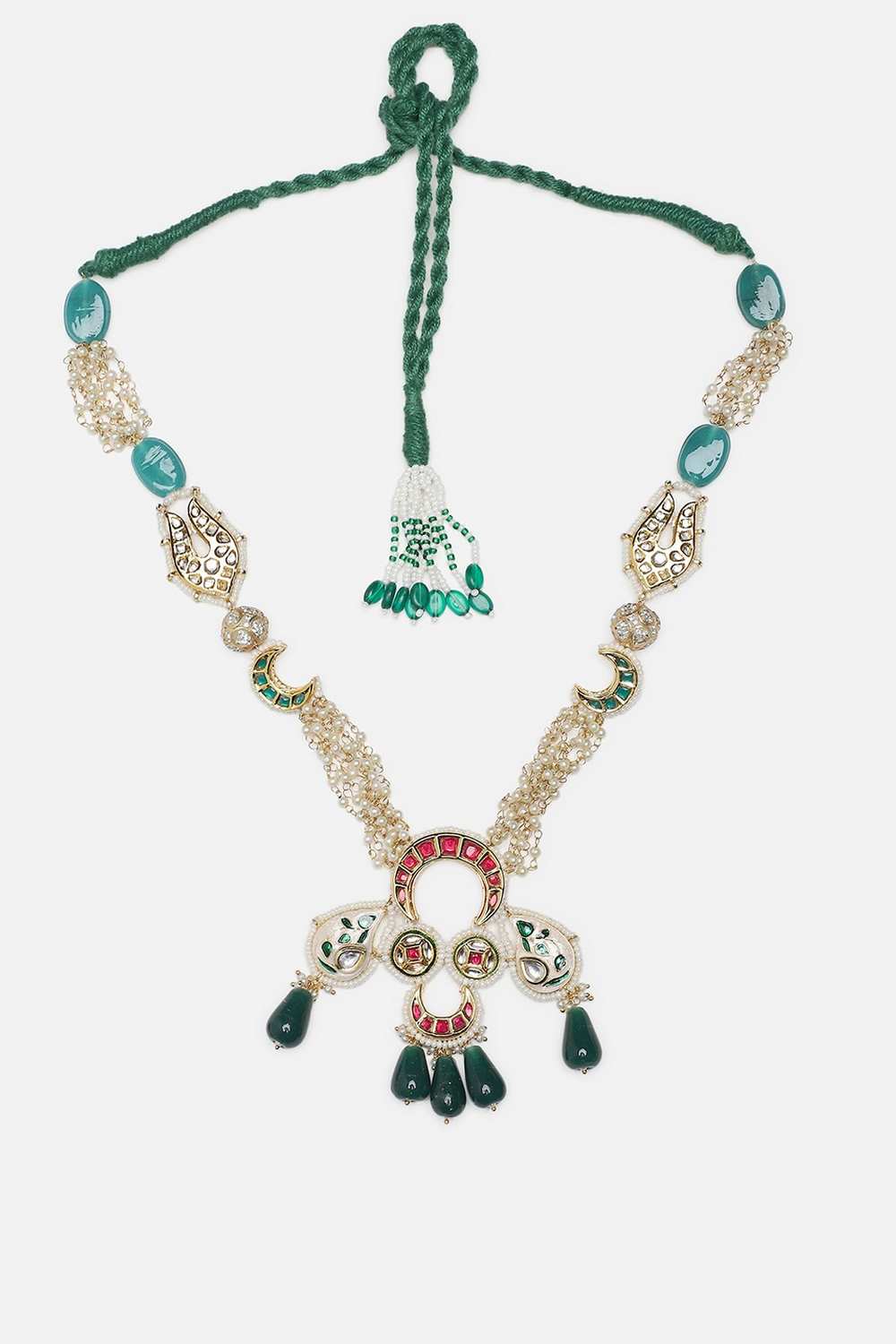 Complete your look with our Necklace an accessory designed to add the perfect finishing touch. Made from Alloy and showcasing intricate American Diamonds, Kundan, Pearls, Natural Stones, Faux Emerald it’s ideal for Partywear. Pair it with complementary pieces to enhance your outfit and make every moment memorable.